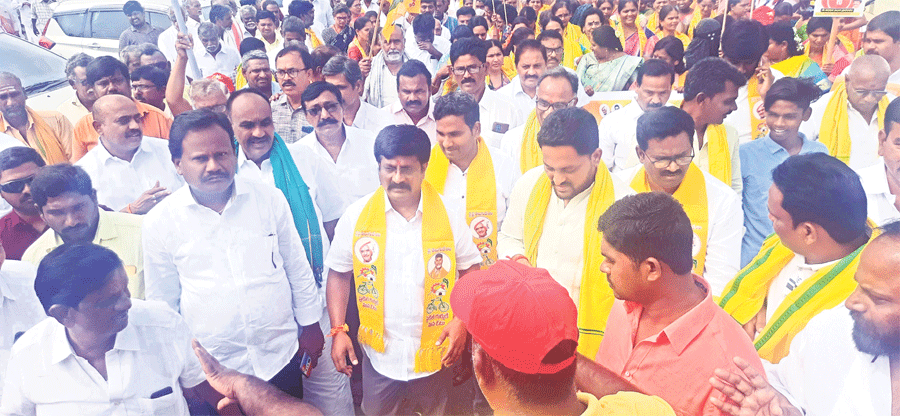 మాజీ ముఖ్యమంత్రి చంద్రబాబు మహాశక్తి పథకాలతో మ హిళలకు ప్రమోజనం కలుగుతుందని మాజీ ఎమ్మెల్యే, టీడీపీ ఇన్చార్జి డాక్టర్ ఉగ్ర నరసింహారెడ్డి తెలిపారు. మన ఊరు - మన ఉగ్ర కా ర్యక్రమంలో భాగంగా బాబు ష్యూరిటీ.. భవిష్యత్కు గ్యారెంటీ కార్యక్రమాన్ని ప ట్టణంలో టీ డీపీ, జనసేన శ్రేణులతో కలిసి గురువారం రో డ్షో కార్యక్రమం నిర్వహించారు. పువ్వాడి క ల్యాణ మండపం నుంచి పట్టణంలోని మెయిన్ రోడ్డులో ఉగ్ర రోడ్ షో చేశారు. ఈసందర్భంగా ఆరు గ్యారెంటీ పథకాలపై ప్ర జలకు అవగాహన కల్పించారు.