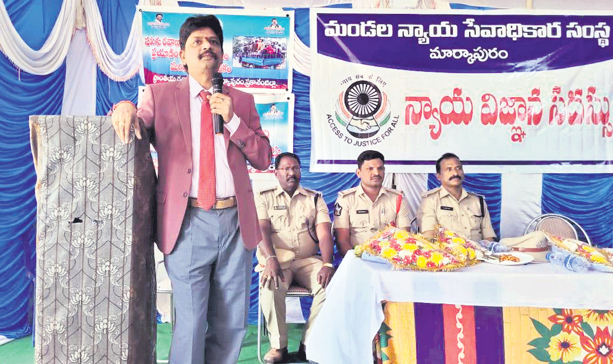 మార్కాపురం(వన్టౌన్), మార్చి 4: డ్రైవర్లతో పాటు వివిధ వాహనదారులు రహ దారి సూత్రాలు పాటించాలని 6వ అదనపు జిల్లా జడ్జీ టి.రాజావెంకటాద్రి అన్నారు. స్థానిక ఎస్వీకేపీ కళాశాలలో శనివారం మండల న్యాయసేవాధికార సంస్థ ఆధ్వర్యం లో ఆటోకార్మికులు, డ్రైవర్లకు న్యాయవిజ్ఞాన సదస్సు నిర్వహిం చారు. ఈ సందర్భంగా జడ్జి రాజావెంకటాద్రి మాట్లాడుతూ రాజ్యంగబద్ధ చట్టాలు పేదలకు న్యాయపరమైన అంశాలు ఉచితం గా సేవలు అందించేందుకు ఈ సదస్సు ఏర్పాటు చేశామన్నారు. మద్యం సేవించి, మొబైల్ మాట్లాడుతు డ్రైవింగ్ చేయరాదన్నారు. విలువైన ప్రాణాలు మీ చేతల్లో ఉన్నాయన్న విషయం గుర్తించు కోవాలన్నారు. ఆటో నడుపుకుంటూ డ్రైవింగ్ లైసెన్స్లేని వారిని గుర్తించిన జడ్జి అర్హత ఉన్న వారందరికీ లైసెన్సులు ఇవ్వాలని మోటార్ వెహికల్ అధికారులను ఆదేశిం చారు. మరో న్యాయమూర్తి ఆదినారా యణ మాట్లాడుతూ.. సత్ప్రవర్తన నైతిక విలువలతో జీవించాలన్నారు. నిత్యం జరుగు తున్న రోడ్డు ప్రమాదాలతో అనేక కుటుంబాలు రోడ్డున పడుతున్నాయన్నారు. ప్రమాదాలను నివారిం చేందుకు కృషి చేయాలన్నారు. కార్యక్రమంలో ఆర్డీవో అమర్నాయక్, ఎంవీఐ మాధవరావు, పట్టణ ఎస్ఐ శశికుమార్, బార్అసోసియేన్ అధ్యక్షు డు కంది నారాయణరెడ్డి పాల్గొన్నారు.