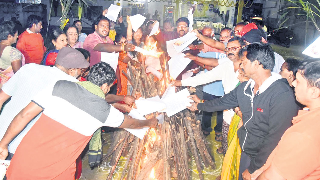 భోగిమంటల్లో ప్రతులు దహనం చేసి నిరసన