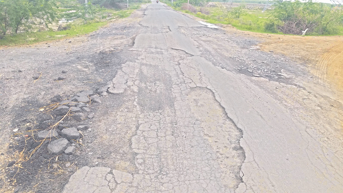 రోడ్లపై గుంతలు.. లేచిన కంకర
