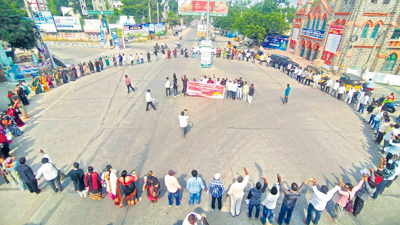 ఒంగోలులో భారీ ర్యాలీ, మానవహారం