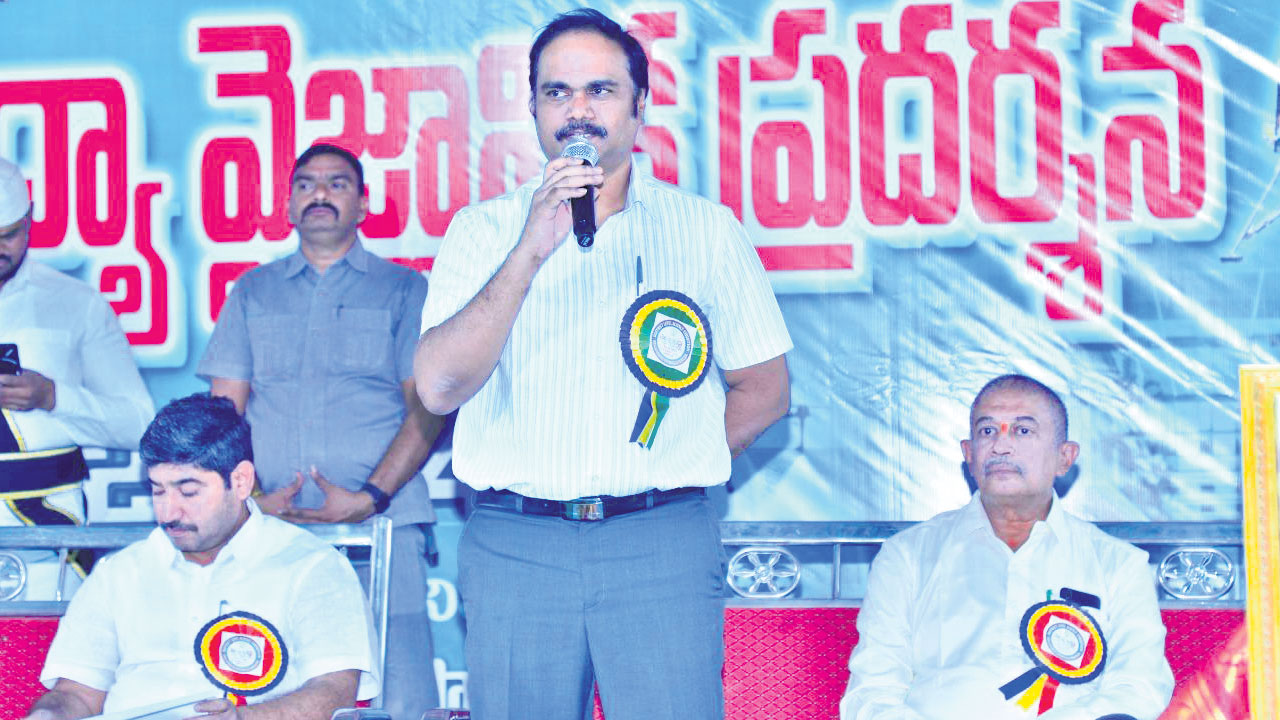 మార్కాపురం వన్టౌన్, డిసెంబరు 23: విద్యార్థులు శాస్త్రీయ ఆలోచనలకు పదును పెట్టాలని విద్యాశాఖ ఆర్జేడీ, డీఈవో వీఎస్ సుబ్బారావు అన్నారు. స్థానిక జిల్లా పరిషత్ హైస్కూల్లో జిల్లాస్థాయి విద్య,వైజ్ఞానిక ప్రదర్శనను శనివారం నిర్వహించారు. ఈ సందర్భంగా ఆయన మాట్లాడుతూ విద్యార్థుల్లో ప్రేరణ కల్పించడానికి ఇటువంటి ప్రదర్శనలు తోడ్పడతాయన్నారు. ఎమ్మెల్యే నాగార్జునరెడ్డి మాట్లాడుతూ ఏళ్ల తరబడి శాస్త్రజ్ఞులు శ్రమించి ప్రజలకు ఉపయోగపడే అనేక ఆవిష్కరణలు చేశారన్నారు. తొలుత వారు జ్యోతి ప్రజ్వలన చేసి డాక్టర్ ఎల్లాప్రగడ సుబ్బారావు చిత్రపటానికి నివాళి అర్పించారు. కార్యక్రమంలో డిప్యూటీ డీఈవోలు చంద్రమౌళీశ్వర్, అనితా రోజ్రాణి, మున్సిపల్ చైర్మన్ బాలమురళీకృష్ణ, జిల్లా ఏఎంవో రమేష్, డీఎల్డీవో సాయికుమార్, ఎంపీడీవో చందన, ఎంఈవోలు రాందాస్ నాయక్, శ్రీనివాసులు, జాతీయ ఉత్తమ ఉపాధ్యాయ అవార్డు గ్రహీత జగన్నాథ్ తదితరులు పాల్గొన్నారు.