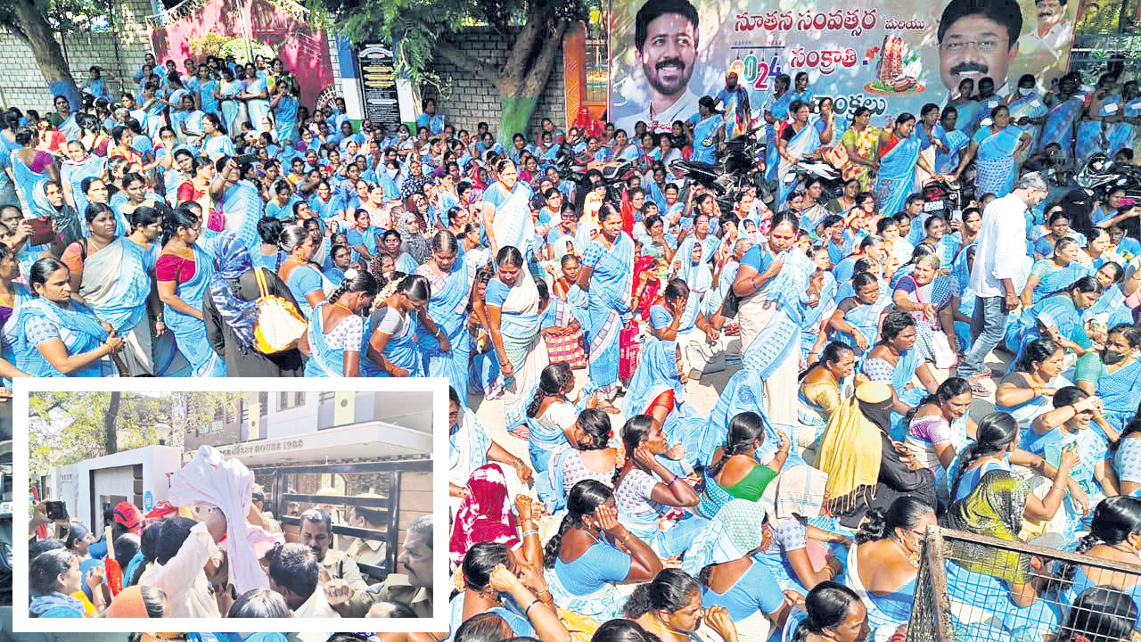 ఆందోళనను కొనసాగిస్తున్న అంగన్వాడీలు