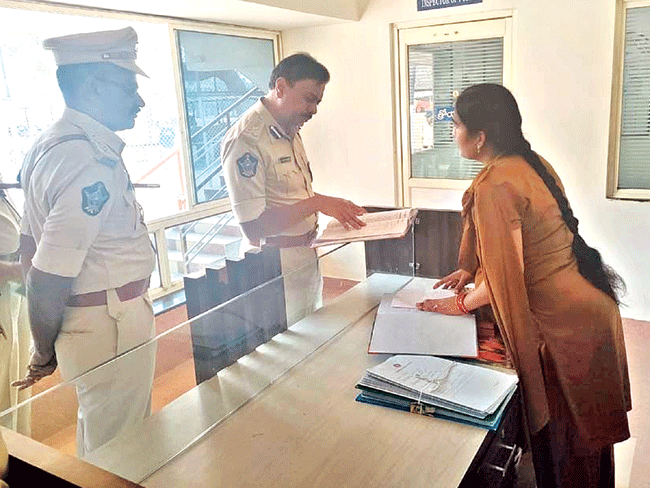 పలాస: శాంతి భద్ర తలకు విఘాతం కలి గించే వారిపై చట్టపర మైన చర్యలు తీసుకుం టామని విశాఖపట్నం రేంజ్ డీఐజీ ఎస్.హరి కృష్ణ హెచ్చరించారు. ఆదివారం కాశీబుగ్గ సర్కిల్ పోలీసు స్టేషన్, డీఎస్పీ కార్యాలయాల్లో వార్షిక తనిఖీలు నిర్వహిం చారు. మధ్యాహ్నం పోలీ స్స్టేషన్లో వివిధ కేసు లకు సంబంధించి ఫైళ్లు పరిశీలించారు. అనంతరం డీఎస్పీ కార్యాలయంలో డివిజన్లోని పోలీస్స్టేషన్ల వారీగా తనిఖీలు చేపట్టారు. ఈ సందర్భంగా విలేకరులతో మాట్లాడుతూ పోలీస్ స్టేషన్కు వచ్చే ఫిర్యాదుదారులతో మర్యాద పూర్వకంగా వ్యవహరించి వారి సమస్యలు అడిగి పరిష్కరించాలని కోరారు. తొలుత పోలీస్స్టేషన్కు చేరుకున్న డీఐజీకి పోలీసులు గౌరవ వందనాన్ని సమర్పించారు. ఫిర్యాదుల విభాగంలో రికార్డులు పరిశీలించారు. ఆయన వెంట డీఎస్పీ నాగేశ్వరరెడ్డి, సీఐలు నవీన్కుమార్, శంకరరావు, మల్లేశ్వరరావుతోపాటు సబ్డివిజన్కు చెందిన ఎస్ఐలు, సిబ్బంది పాల్గొన్నారు.