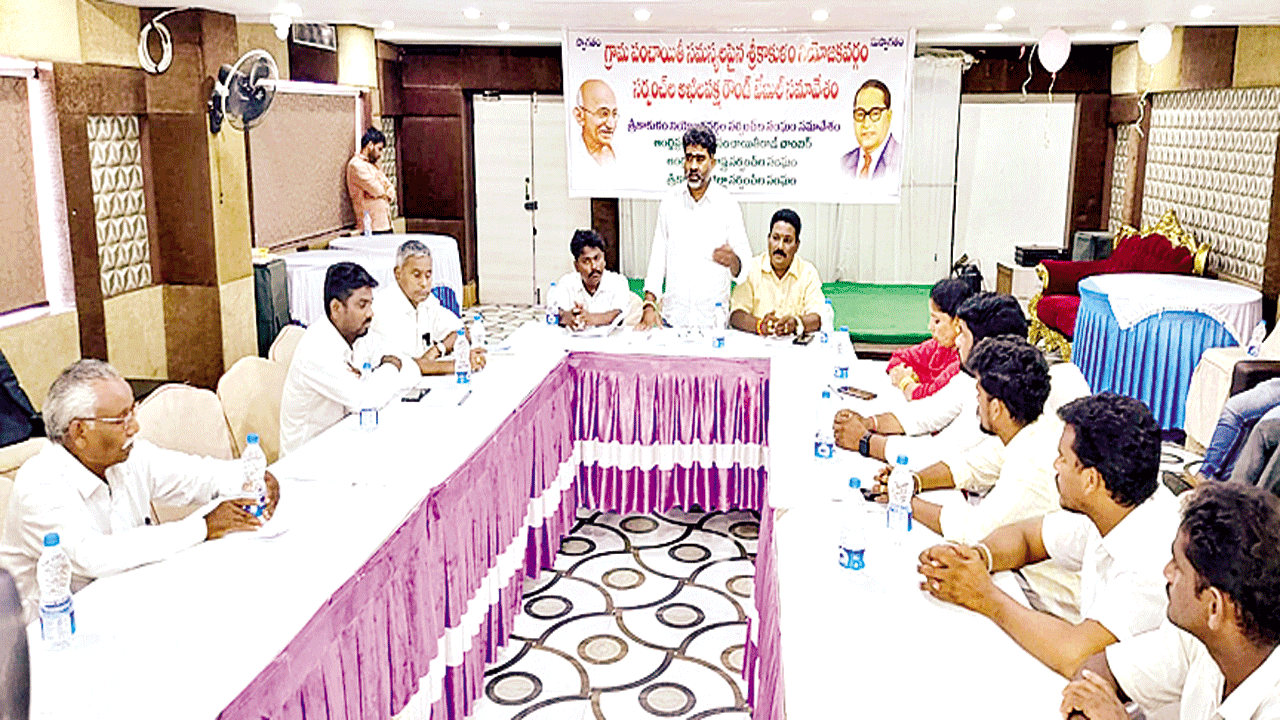 అరసవల్లి: సర్పంచ్ల హక్కులను కాలరాస్తే సహించేది లేదని ఆ సంఘ జిల్లా అధ్యక్షుడు గొండు శంకర్ అన్నారు. నగరంలోని ఓ హోటల్లో రాష్ట్ర పంచాయతీ చాంబర్, రాష్ట్ర సర్పంచ్ల సంఘం ఆదేశాల మేరకు సోమవారం అఖిలపక్ష సర్పంచ్ల సమావేశాన్ని నిర్వహించారు. ఈ సందర్భంగా శంకర్ మాట్లాడుతూ.. సర్పంచ్ల విధులు, రాజ్యాంగం క ల్పించిన హక్కులపై చర్చ, ఉద్యమ కార్యాచరణ, ని యోజకవర్గ, జిల్లా స్థాయి కమిటీలపై చర్చించి నిర్ణ యాలు తీసుకున్నామని తెలిపారు. గ్రామ సచివాల యాలను, వలంటీర్లను పంచాయతీల్లో విలీనం చేసి, సర్పంచ్ల ఆధ్వర్యంలోనే పని చేయించాలని కోరారు. గతంలో వలే ఉపాధి హామీ పథకం పనులను, నిధు లను గ్రామ పంచాయతీల అధీనంలోకి తీసుకురా వాలని డిమాండ్ చేశారు. మైనర్ పంచాయతీలకు ఉచిత విద్యుత్ విధానాన్ని కొనసాగించాలని కోరారు. గ్రామ పంచాయతీలతో సంబంధం లేకుండా సచివా లయ ఉద్యోగులు సమాంతర వ్యవస్థగా పనిచేస్తు న్నారని, ఇది సర్పంచ్ల ఆత్మాభిమానాన్ని కించపరి చినట్టేనని ఆవేదన వ్యక్తం చేశారు. ప్రభుత్వ కార్యక్ర మాల్లో సర్పంచ్లకు ప్రోటోకాల్ ఇచ్చేలా అధికారుల కు ఆదేశాలివ్వాలని డిమాండ్ చేశారు. సర్పంచ్లు కొంక్యాన ఆదినారాయణ, రుప్ప లక్ష్మి, రంధి రాజేశ్వరి, నరేష్, లక్ష్మీనారాయణ, బి.రామారావు, కర్రి సీతా రత్నం, ఎన్.లక్ష్మారెడ్డి, వి.రవికుమార్ పాల్గొన్నారు.
