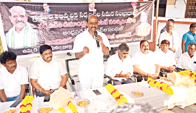 అరసవల్లి, డిసెంబరు 21: ‘పంచాయతీల్లో దొంగలు పడ్డారు. రూ.8,629 కోట్లు దోచుకున్నారు’ అని రాష్ట్ర పంచాయతీరాజ్ చాంబర్ అధ్యక్షుడు వైవీబీ రాజేంద్రప్రసాద్ ఆరోపించారు. గురువారం శ్రీకాకుళంలో విలేకరులతో ఆయన మాట్లాడుతూ.. ‘గ్రామాలభివృద్ధి కోసం కేంద్ర ప్రభుత్వం మంజూరు చేసిన 14, 15వ ఆర్థిక సంఘం నిధులను రాష్ట్ర ప్రభుత్వం దొంగిలించింది. 12,918 పంచాయతీలకు సంబంధించి రూ.8,629.79 కోట్లను దారి మళ్లించింది. సొంత పథకాలకు వాడుకుంది. మూడేళ్లుగా గ్రామాల్లో అభివృద్ధి పనులు లేక.. కనీస సౌకర్యాలు లేక పంచాయతీరాజ్ వ్యవస్థను నిర్వీర్యం చేసింది. సర్పంచ్లను ఉత్సవ విగ్రహాలుగా మార్చేసింది. సమస్యలపై పార్టీలకు అతీతంగా సర్పంచ్లంతా పోరాడినా పట్టించుకోకపోవడం దారుణం. పంచాయతీలకు కేటాయించిన నిధులను తక్షణమే జమ చేయాలి’ అని ప్రభుత్వాన్ని డిమాండ్ చేశారు. ‘వలంటీర్లు, సచివాలయాలను పంచాయతీలో విలీనం చేయాలి. సర్పంచ్, ఎంపీటీసీల గౌరవ వేతనం రూ.15వేలకు, ఎంపీపీ, జెడ్పీటీసీలకు రూ.30వేలకు పెంచాలి. కేంద్ర నిధులను నేరుగా పంచాయతీలకే ఇవ్వాలి. గ్రామసభల తీర్మానం మేరకు సర్పంచ్ల ఆధ్వర్యంలో అభివృద్ధి పనులు చేపట్టాలి. విద్యుత్ బకాయిలు రద్దు చేయాలి. తదితర 16 డిమాండ్లను తక్షణమే పరిష్కరించాల’ని ఆయన కోరారు. సమస్యలపై సర్పంచ్లంతా ఐక్యంగా ఉద్యమించాలని పిలుపునిచ్చారు. కార్యక్రమంలో ఉమ్మడి జిల్లా సర్పంచ్ల సంఘం అధ్యక్షుడు గొండు శంకర్, రాష్ట్ర పంచాయతీరాజ్ చాంబర్ ఉపాధ్యక్షుడు ఆనెపు రామకృష్ణ, వై.వినోద్రాజు, చిత్తూరు జిల్లా అధ్యక్షుడు చుక్క ధనుంజయ్, సెక్రటరీ పి.వెంకట భానోజీనాయుడు, రాష్ట్ర కార్యదర్శి బోగాది అప్పలనాయుడు, శ్రీకాకుళం నియోజకవర్గ సర్పంచ్ల సంఘం అధ్యక్షుడు కొంక్యాన ఆదినారాయణ, ప్రధాన కార్యదర్శి రుప్ప లక్ష్మీ రమణమూర్తి పాల్గొన్నారు.