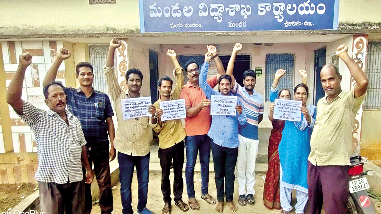 ప్రభుత్వం నిర్వహించే పరీక్షల్లో పాసై కాంట్రాక్ట్ ఉద్యోగులుగా 20 ఏళ్ల నుంచి వెట్టిచాకిరీ చేస్తున్నా తమను రెగ్యులరైజ్ చేయలేదని, కనీసం సమాన పనికి సమాన వేతనం ఉత్తర్వులను అమలు చేయడం లేదని ఎస్ఎస్ఏ ఉద్యోగులు ఆవేదన వ్యక్తంచేశారు. ఈ మేరకు మంగళవారం మందస, సంతబొమ్మాళి ఎమ్మార్సీ కార్యాల యాల ఎదుట నిరసన తెలిపారు.