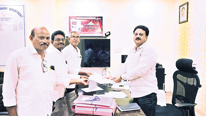 అనకాపల్లి టౌన్, ఆగస్టు1 : రాష్ట్రంలోని గొర్రెలు, మేకల పెంపకందారులకు సబ్సిడీ రుణాలు మంజూరు చేయాలని పశుసంవర్థక శాఖ డైరెక్టర్ డాక్టర్ అమరేంద్రకుమార్ను మంగళవారం కోరినట్టు సంఘ రాష్ట్ర అధ్యక్షుడు గంటా శ్రీరామ్ తెలిపారు. ప్రతి పెంపకందారునికి 54 శాతం సబ్సిడీతో లక్ష రూపాయలు చొప్పున రుణం ఇవ్వాలని కోరామన్నారు. ఎన్సీడీసీ రూ. 88 కోట్లు రాష్ట్ర ప్రభుత్వ ఖాతాకు జమ చేసి ఆరు నెలలు కావస్తున్నా వాటిని విడుదల చేయలేదన్నారు. గొర్రెలు, మేకల రక్షణకు 90 శాతం సబ్సిడీతో ఉపాధి హామీ నిధులతో షెడ్లు నిర్మించాలని కోరామన్నారు. ఈ సమస్యలను ప్రభుత్వం దృష్టికి తీసుకెళ్లి పరిష్కరిస్తామని డైరెక్టర్ హామీ ఇచ్చారని ఆయన తెలిపారు. డైరెక్టర్ను కలిసిన వారిలో సంఘ ప్రతినిధులు పీవీ ఆంజనేయులు, కిలారి పెదబ్బాయి, పి. తిరుపతిరావు ఉన్నారు.