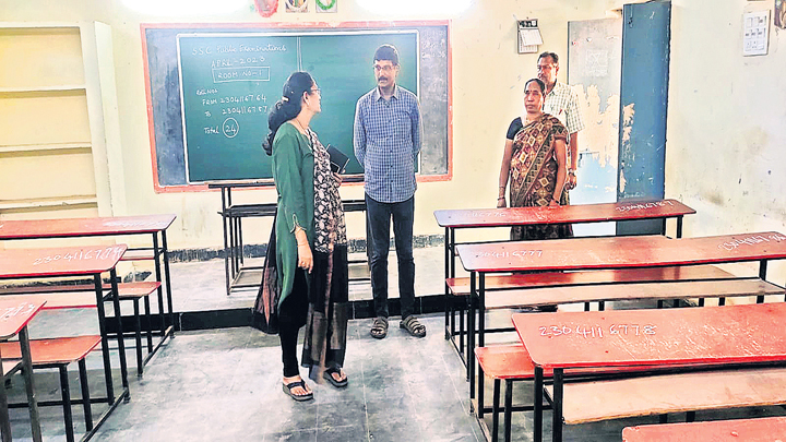 పరీక్షలు రాసే విద్యార్థులను ఉదయం 8.30 గంటల నుంచే కేంద్రాల్లోకి అనుమతించాలని ఆదేశించారు. పరీక్షలు ప్రారంభమైన అరగంట వరకు అనుమతిస్తారు. ప్రతి రోజు ఒకే విద్యార్థి/విద్యార్థులు ఆలస్యంగా వస్తే అనుమతించవద్దని ఆదేశాలిచ్చారు. పరీక్షలు నిర్వహించే పాఠశాలలకు సెలవులు ఇవ్వడం తో ప్రైవేటు పాఠశాలలు మధ్యాహ్నం పాఠశాలలు నడిపితే చర్యలు తీసుకుంటామని డీఈవో చంద్రకళ హెచ్చరించారు. పరీక్షలు రాసే విద్యార్థులు హాలులోని కి ఎలకా్ట్రనిక్ పరికరాలు, స్మార్ట్ వాచీలతో రాకూడద న్నారు. పదోతరగతి పరీక్షలకు ప్రత్యేక పరిశీలకులుగా పాఠశాల విద్యాశాఖ ఆర్జేడీ జ్యోతికుమారిని నియమిం చారు. ఈ మేరకు ఆదివారం ఆర్జేడీ జ్యోతికుమారి, డీఈవో చంద్రకళ క్వీన్మేరీస్ బాలికల ఉన్నత పాఠశాలలో ఏర్పాటుచేసిన కంట్రోల్రూమ్ నుంచి సమీక్షించారు. సోమవారం స్ట్రాంగ్రూమ్ల నుంచి పరీక్ష కేంద్రాలకు ప్రశ్నపత్రాలు, జవాబుపత్రాల పంపిణీలో ఇబ్బందులు ఎదురవకుండా చూడాలని అధికారులను ఆదేశించారు.
