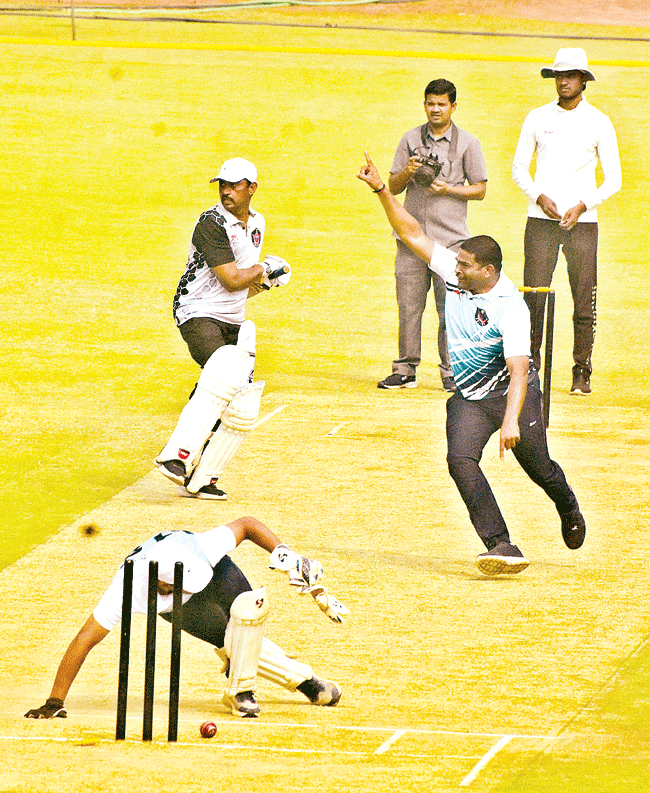 విజయనగరం క్రైం: విజ్జీ స్టేడియంలో పోలీసులక్రికెట్ మ్యాచ్ శనివారం ఉత్సాహంగా సాగింది. ఇరు జిల్లాల ఎస్పీలు దీపిక, విక్రాంత్ పోటీల్లో పాల్గొ న్నారు. విజయనగరం కింగ్స్, పార్వతీపురం పయనీర్స్ టీంలు పోటాపోటీగా ఆడారు. ముఖ్య అతిథిగా డిప్యూటీ స్పీకర్ కోలగట్ల వీరభద్రస్వామి హాజరై మ్యాచ్ను ప్రారంభించారు. పార్వతీపురం పయనీర్స్ 18 ఓవర్లలో మూడు వికెట్లు కోల్పోయి 149 పరుగులు చేసి విజయం సాధించారు. తొ లుత బ్యాటింగ్కు దిగిన విజయ నగరం కింగ్స్ 148 పరుగులు చేశారు. ఇరు జిల్లాల ఎస్పీలు మాట్లాడుతూ, నూతన సంవత్సర ప్రారంభానికి ముందు పోలీసు శాఖ అధికారు ల్లో క్రికెట్ మ్యాచ్ కొత్త ఉత్సాహన్ని నింపిందన్నారు. కార్యక్రమంలో ఏఎస్పీలు దిలీప్కిరణ్, సునీల్ సరోన్, డీఎస్పీలు జీవీ కృష్ణారావు, ట్రైనీ డీఎస్పీలు షేక్ అజీజ్, ఆర్.గోవిందరావు, ఆర్.శ్రీనివాసరావు, విశ్వనాథ్ తదితరులు పాల్గొన్నారు.