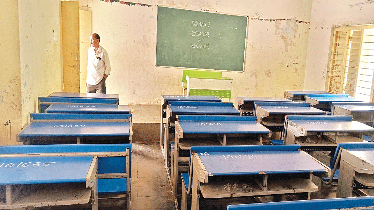 సాలూరు రూరల్, ఏప్రిల్ 2: జిల్లాలో నేటి నుంచి ప్రారంభం కానున్న పదో తరగతి పరీక్షలకు అధికారులు అన్ని ఏర్పాట్లు పూర్తిచేశారు. ఈ మేరకు ఆదివారం పరీక్ష కేంద్రాల్లో సీటింగ్ ఏర్పాట్లు పూర్తి చేసి రోల్ నెంబర్లు రాశారు. గతంలో బెంచికి ఇద్దరు విద్యార్థులు కూర్చొన్న సంగతి తెలిసిందే. అయితే ఈ సారి బెంచికి ఒక్క విద్యార్థే ఉండేటట్టు సీటింగ్ అరెంజ్మెంట్ ఇచ్చారు. గది మరీ ఇరుకుగా ఉండి 24 మందికి సర్దుబాటు లేకపోతేనే బెంచికి ఇరువురు కూర్చొనే అవకాశం కల్పించారు. జిల్లాలో 64 కేంద్రాల్లో టెన్త్ పరీక్షలను నిర్వహిస్తుండగా, వాటిల్లో 22 సీ సెంటర్లు ఉన్నాయి. మొత్తంగా 11,336 మంది విద్యార్థులు హాజరు కానున్నారు. ఈ పరీక్షలను పకడ్బందీగా నిర్వహించేందుకు విద్యాశాఖ అధికారులు చర్యలు తీసుకున్నారు. ఈ పరీక్షలు ఉదయం 9.30 గంటల నుంచి మధ్యాహ్నం 12.45 గంటల వరకు జరగనున్నాయి. ఈ నేపథ్యంలో విద్యార్థులను ఉదయం 8.45 గంటల నుంచి పరీక్ష హాల్లోకి అనుమతించనున్నారు. నిమిషం ఆలస్యమైనా కేంద్రంలోకి అనుమతించరు. ఇదిలా ఉండగా పదో తరగతి పరీక్షల్లో ఇన్విజిలేటర్లు బాధ్యయుతంగా విధులు నిర్వర్తించాలని ఆపస్ రాష్ట్రకార్యవర్గ సభ్యుడు నాలి చంద్రశేఖర్, ఏపీటీఎఫ్ ( 257 ) పాచిపెంట నేత పీఎస్ఎస్ఎస్ మోహనరావు సూచించారు.