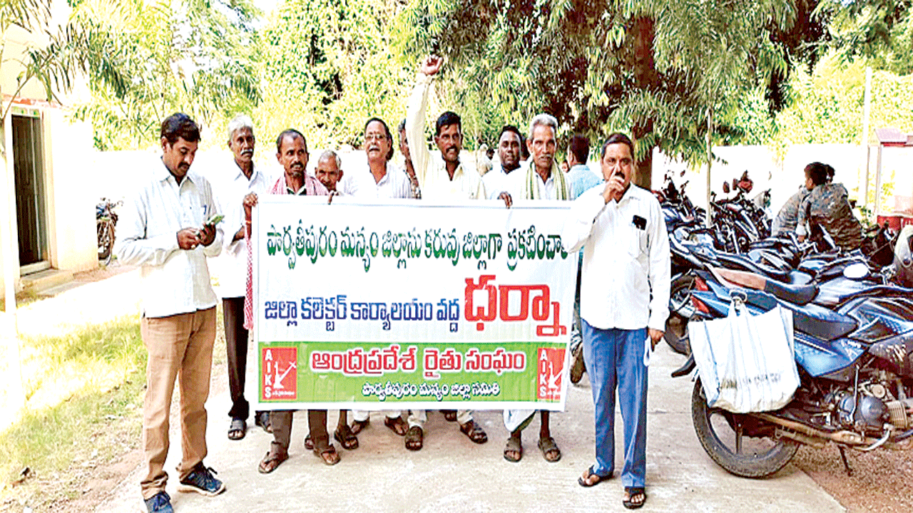 కరువు జిల్లాగా ప్రకటించాలని సీపీఎం, సీపీఐ, రైతు కూలి, గిరిజన సంఘాల నాయకులు డిమాండ్ చేశారు. ఈ మేరకు సోమవారం కలెక్టరేట్ వరకు ర్యాలీగా వచ్చారు. అనంతరం అక్కడ నినాదాలు చేశారు. జాయింట్ కలెక్టర్ గోవిందరావును కలిసి వినతిపత్రం అందించారు. వర్షాభావం, ప్రాజెక్టుల నుంచి పూర్తిస్థాయిలో సాగునీరు అందని కారణంగా జిల్లాలోని 15 మండలాల్లో పూర్తిగా వరి పంట ఎండిపోయిందన్నారు. అయితే ప్రభుత్వం ప్రకటించిన కరువు మండలాల్లో జిల్లాకు చెందిన ఒక మండలం కూడా లేదన్నారు. ఇప్పటికైనా ఉన్నతాధికారులు స్పందించాలని వారితో పాటు కురుపాం మండల నివాసి గరుగుబిల్లి సూరయ్య తదితరులు కోరారు. జిల్లాలోని పంటల పరిస్థితిని ఉన్నతాధికారులకు నివేదిస్తామని అధికారులు వారికి హామీ ఇచ్చారు.