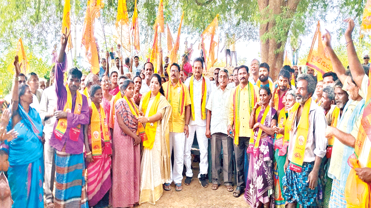 మెంటాడ: రాష్ట్రం అభివృద్ధి చెందాలంటే చంద్రబాబు వల్లే సాధ్యమని పొలిట్ బ్యూరో సభ్యురాలు జి.సంధ్యారాణి అన్నారు. సోమవారం అగూరు పంచాయతీ రెల్లిగూడెం ‘బాబు ష్యూరిటీ-భవిష్యత్ గ్యారంటీ’ కార్యక్రమంలో ఆమె పాల్గొన్నారు. ఇంటింటికి వెళ్లి, టీడీపీ నేత భంజ్దేవ్తో కలిసి కరపత్రాలు పంపిణీ చేశారు. ఈ సంధర్బంగా అమె మాట్లాడారు. రాష్ట్రంలో అరాచక పాలన కొనసాగుతోందన్నారు. బస్సు యాత్రకు జనాలు లేక మంత్రులు తలలు పట్టుకుంటున్నారని అన్నారు.