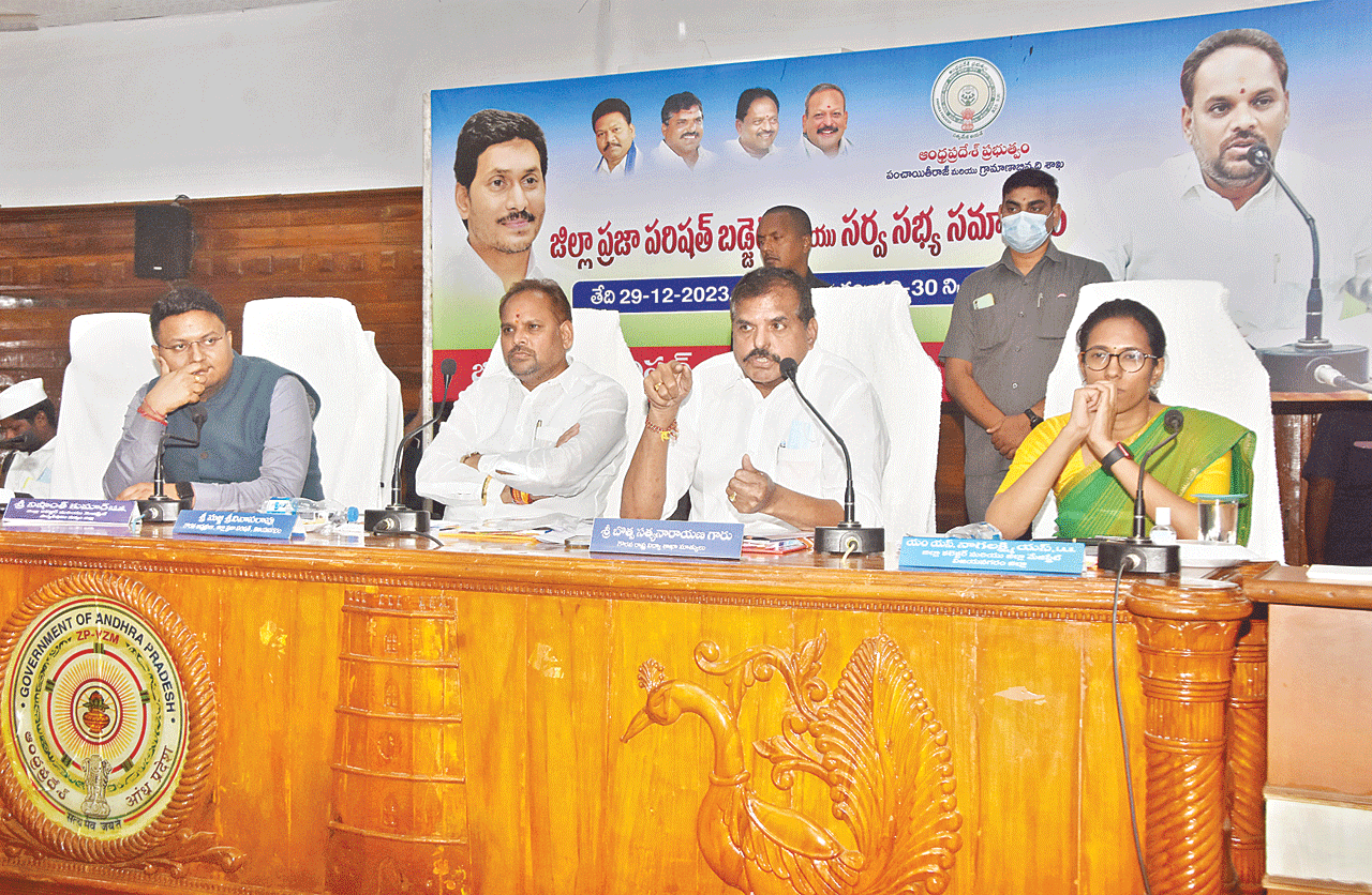 విజయనగరం (ఆంధ్రజ్యోతి) డిసెంబరు 29: జడ్పీ సర్వసభ్య సమావేశాన్ని అధికార పార్టీ ఎన్నికల స్టంట్గా మార్చేసింది. ప్రజా సమస్యలను గాలికొదిలేసి పబ్లిసిటీకి ప్రాధాన్యమిచ్చింది. సమస్యలపై చర్చించకుండా ఎంతసేపూ సొంత డబ్బా.. పరనింద మాదిరిగా సమావేశం సాగింది. జిల్లా పరిషత్ సమావేశ మందిరంలో శుక్రవారం జడ్పీ చైర్మన్ మజ్జి శ్రీనివాసరావు అధ్యక్షతన విజయనగరం, పార్వతీపురం-మన్యం జిల్లాల సర్వసభ్య సమావేశం జరిగింది. ఈ సమావేశాన్ని మంత్రి బొత్స సత్యనారాయణ ఎన్నికల కసరత్తుగా మార్చేయడంపై విమర్శలు వ్యక్తమవుతున్నాయి. రాజకీయాలు ఇక్కడ మాట్లాడకూడదు అంటూనే.. పింఛన్లు, ఆసరా, చేయూత ఇతర పథకాల గురించి డబ్బా కొట్టారు. పథకాలపై పెద్ద ఎత్తున ప్రచారం చేయాలని వలంటీర్లకు సూచించారు. సీఎం గురించి గొప్పగా చెప్పిన లబ్ధిదారుల వీడియోలను పంపిస్తే ఆ వలంటీర్లకు బహుమతులు కూడా ఉంటాయని తెలిపారు. ప్రజా సమస్యలపై చర్చించకుండా ఈ గొప్పలు చెప్పుకోవడం ఏమిటని పలువురు సభ్యులు గుసగుసలాడుకోవడం కనిపించింది.