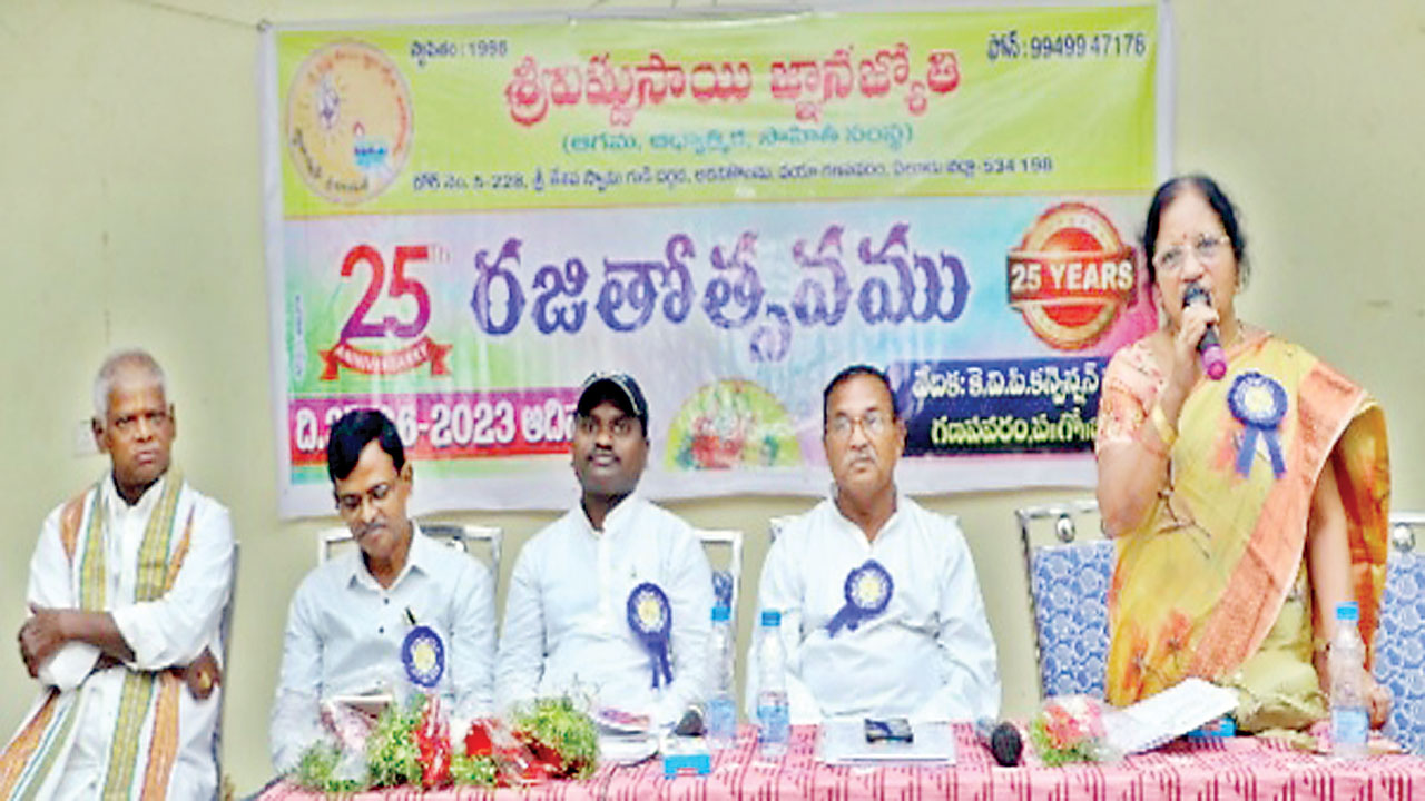 గణపవరం, జూన్ 25: ఆధునిక సమాజంలో తెలుగు సాహిత్యాభివృద్ధికి కవులు, రచయితలు కృషి చేయాల్సిన అవసరం ఎంతైన ఉందని కృష్ణాజిల్లా రచయితల సంఘం కార్యదర్శి, ప్రముఖ ఆధ్యాత్మిక సాహితీవేత్త బమ్మిడిపాటి బాలత్రిపుర సుందరి కోరారు. విష్ణుసాయి జ్ఞాన జ్యోతి సాహితి సంస్థ రజతోత్సవం స్థానిక కేవీపీ ఫంక్షన్హాలులో ఆదివారం నిర్వహించారు. బాలత్రిపురసుందరి మాట్లాడుతూ 25 ఏళ్లుగా సాహితీ సేవ చేస్తున్న విష్ణుసాయి జ్ఞానజ్యోతి సాహితి సంస్థను ఆమె అభినందించారు. రాసిన కవిత్వాన్ని పదేపదే చదివితే మనం రాసిన కవిత్త్వం ఎన్నిసార్లు చదువుతామో అన్ని విజయాలు సొంతం చేసుకోవచ్చని పేర్కొన్నారు. గురువు ఆచరించిన దానిని శిష్యులకు బోధించాలని సోదాహరణగా తెలిపారు. దేవరుణం, రుషిరుణం, పితృరుణం, ఎలా తీర్చుకోవాలో.. దివి అంటే భగవంతుడని విధి రాతను ఎవరు తప్పించుకోలేరని వివరించారు. మహిళలు అత్యుత్తమమని వారు సమాన హక్కుల కోసం పోరాడటమేమిటని సమాజాన్ని ప్రశ్నిస్తూ స్ర్తీ ప్రాదాన్యత గురించి బాలత్రిపురసుందరి వివరించారు. ఈ సందర్భంగా పలువురు సాహితీవేత్తలను సంస్థ అధ్యక్షుడు చక్రవర్తుల సుబ్బారావు సత్కరించారు. చిత్తూరు జిల్లాకు చెందిన కవి, రచయిత పల్లిపట్టు నాగరాజు, విజయవాడకు చెందిన కోపరేటీవ్ డిప్యూటీ రిజిస్టార్ పెద్దింటి కిరణ్కుమార్, సంస్థ అధ్యక్షులు నెక్కంటి ప్రభాకరరావు తదితరులు పాల్గొన్నారు.