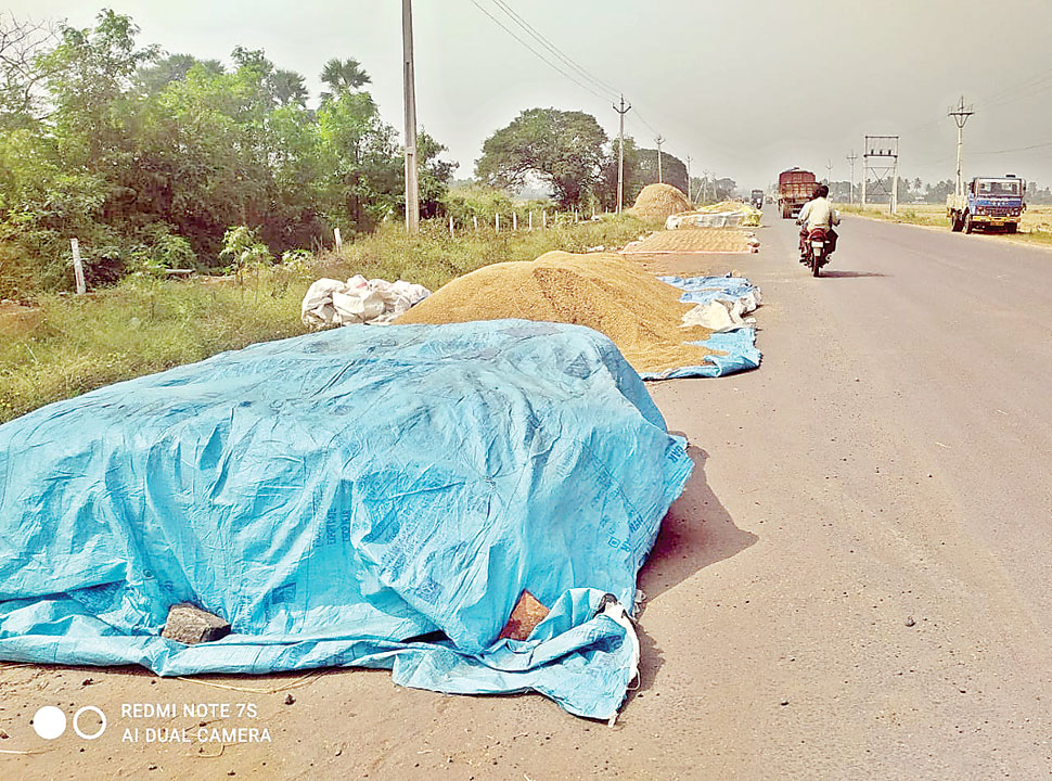 రోడ్ల వెంబడే ధాన్యం నిల్వలు.. ఒడ్డుకు చేర్చినా ఫలితం లేదు