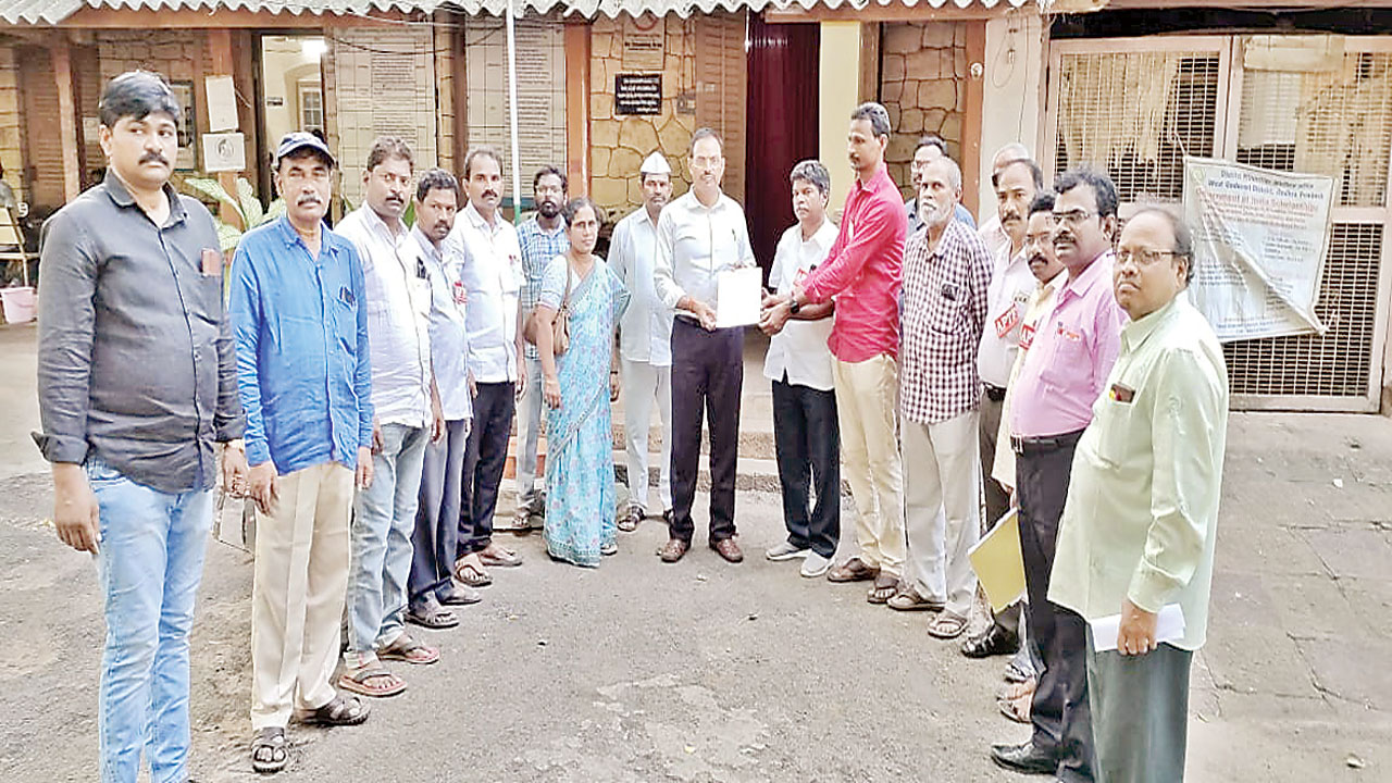ఉపాధ్యాయులకు తక్షణం జీతాలు చెల్లించాలని ఏపీటీఎఫ్ జిల్లా ప్రధానకార్యదర్శి యస్.రంగావళి డిమాండ్ చేశారు. శనివారం సంఘం రాష్ట్ర నాయకత్వం పిలుపు మేరకు నిడమర్రు తాసీల్ధార్ కార్యాలయం వద్ద టీచర్లు నిరసన కార్యక్రమం నిర్వహించారు. కేడర్ స్ర్టెంత్ పేరుతో ఉపాధ్యాయులకు సుమారు రెండు నెలల జీతాలు అందజేయకపోవడం దారణమని అన్నారు. అనంతరం తహసీల్ధార్ సాయి రాజ్కు వినతిపత్రం అందజేశారు. కొండయ్య, జయప్రకాష్నారాయణ, ప్రసాద్, కణితి కృష్ణకుమార్, కె.లలితకుమారి, లక్ష్మీనారాయణ, సుబ్బరాజు పాల్గొన్నారు.