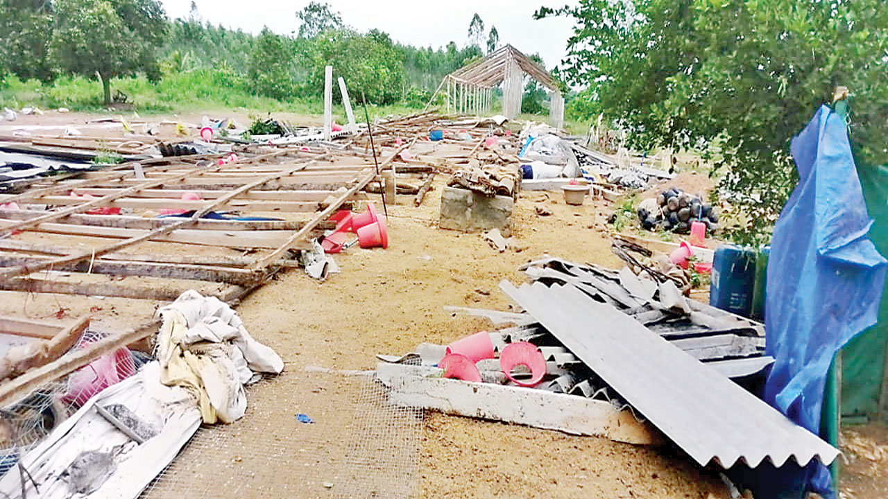 తుమ్మగూడెం, సూరేపల్లిలోకూలిన కోళ్లఫారాల షెడ్లు