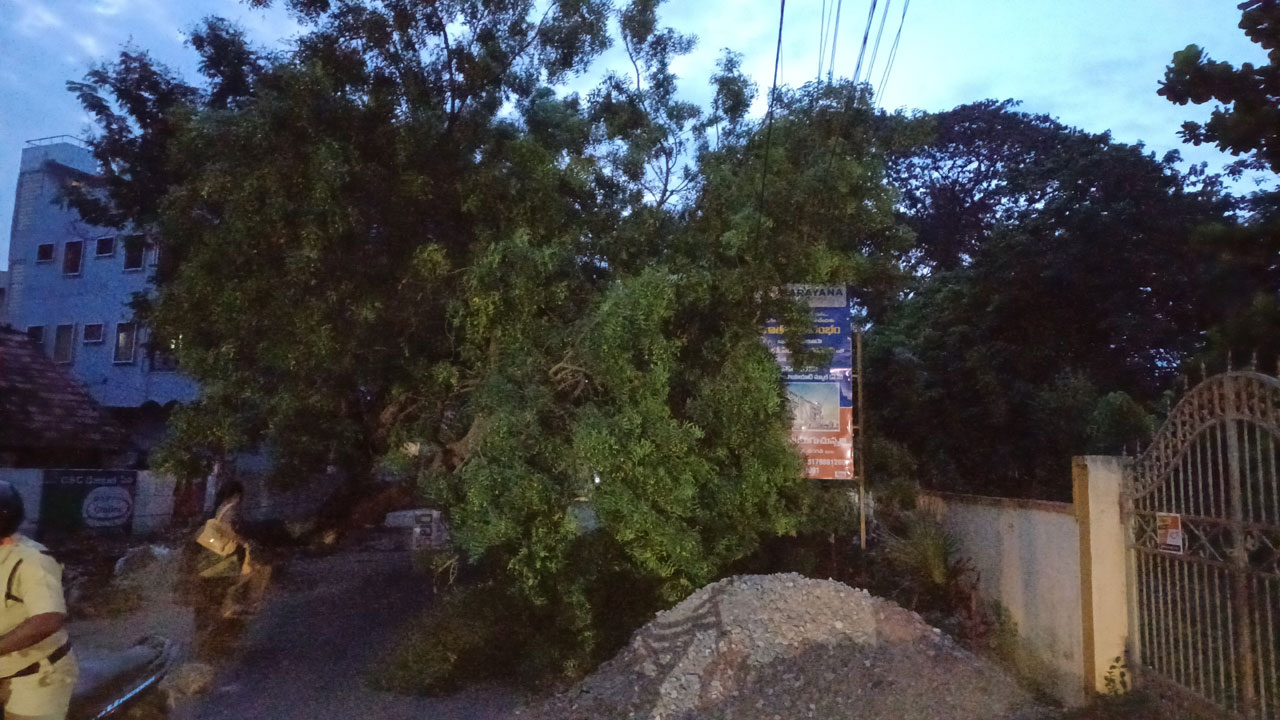 ఏలూరు అమీనాపేటలో విద్యుత్ తీగలపై పడిన చెట్టు