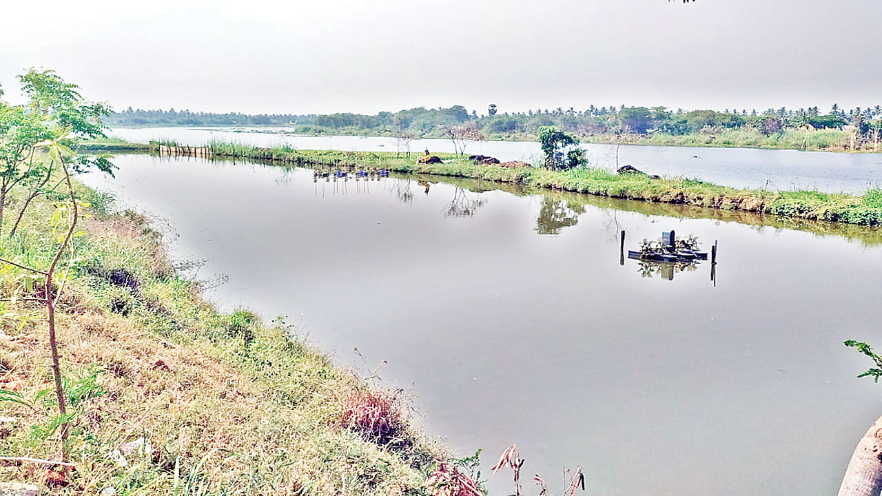 ఉప్పుటేరు గట్లు ఆక్రమించి చేపలు, రొయ్యల చెర్వులు తవ్వకం