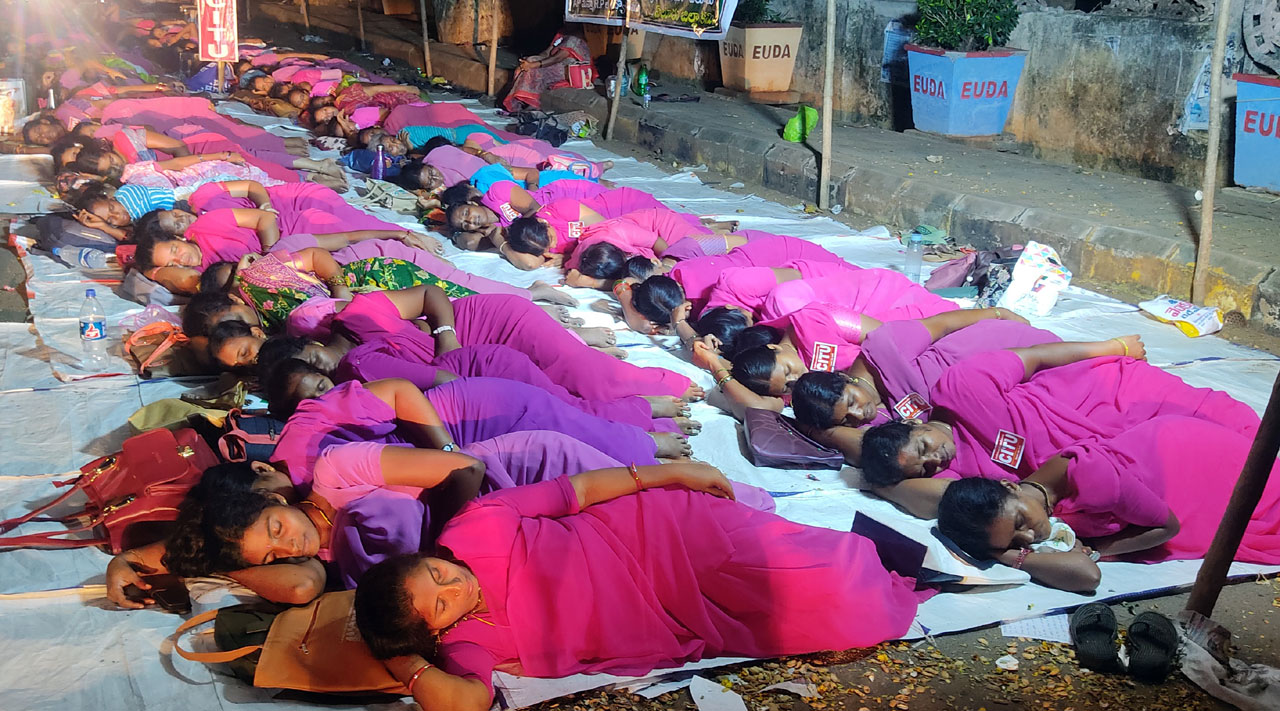 ఏలూరు కలెక్టరేట్, అక్టోబరు 10 : తమ సమస్యలు పరిష్కరించాలని కోరుతూ వెలుగు వీవోఏ, మెప్మా ఆర్పీలు కదం తొక్కారు. వెలుగు వీవోఏల ఉద్యోగుల సంఘం (సీఐటీయూ), మెప్మా ఆర్పీల ఉద్యోగుల సంఘం ఆధ్వర్యంలో ఏలూరు కలెక్టరేట్ వద్ద మంగళవారం 36 గంటల ధర్నా, వంట వార్పుతో నిరసన తెలిపారు. జిల్లా నుంచి వీవోఏలు పెద్ద సంఖ్యలో హాజరయ్యారు. ధర్నా అనంతం వంటా వార్పు, మధ్యాహ్నం, రాత్రి భోజనాలు అక్కడే చేశారు. రాత్రి కలెక్టరేట్ వద్దే ఆరుబయట నిద్రించారు. మూడేళ్ల కాలపరిమితి సర్క్యులర్ రద్దు చేయాలని, గ్రేడింగ్ పద్ధతి వెనక్కు తీసుకో వాలని, కనీస వేతనం రూ.26 వేలు ఇవ్వాలని, హెచ్ఆర్ పాలసీ అమలు చేయాలని డిమాండ్ చేశారు. యూనియన్ జిల్లా అధ్యక్షురాలు సీహెచ్.నాగలక్ష్మి అధ్యక్షత వహించారు. వీవోఏ ఉద్యోగుల సంఘం జిల్లా కార్యదర్శి షేక్ సుభాషిణి, కె.విజయలక్ష్మి, ఎం.ఆమని, మేరీ, కృష్ణకుమారి, కృష్ణవేణి, నాయకత్వం వహించారు.