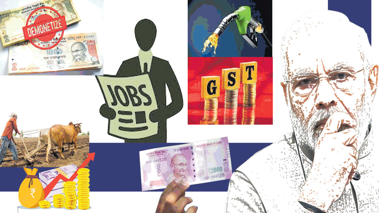 కేంద్రంలో నరేంద్ర మోదీ ప్రధానమంత్రిగా పదవీ బాధ్యతలు చేపట్టి తొమ్మిదేళ్లు గడిచినప్పటికీ గమ్యానికి, గమనానికి, హామీలకు, అమలుకు పొంతన లేకుండానే పాలన సాగుతున్నది. ఏటా రెండు కోట్ల ఉద్యోగాలు, 2022 నాటికి రైతుల ఆదాయం రెట్టింపు, అందరికీ ఇళ్లు వంటి హామీలన్నీ గాలికి కొట్టుకుపోయాయి. అదే సమయంలో చెప్పాపెట్టకుండా 2016లో పెద్ద నోట్ల రద్దు ప్రకటించారు. నాకు 50 రోజుల సమయం ఇవ్వండి దేశంలో నల్లధనం బైటికి వస్తుంది, అవినీతి అంతమవుతుందన్నారు. ప్రధాని మాటలు నిజమేనని సగటు జీవి నమ్మాడు. దేశమంతా బ్యాంకుల ముందు బారులు తీరింది. కానీ నల్లధనం, అవినీతి యథాతథంగా కొనసాగాయి.