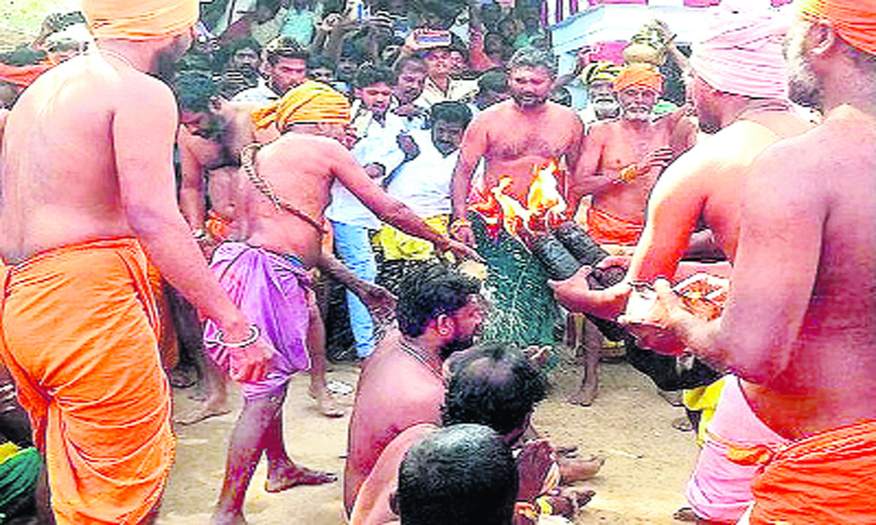దిండుగల్ జిల్లా వలయపాడి మహాలక్ష్మి అమ్మవారి ఆలయ మహాశివరాత్రి వేడుకల్లో భక్తులు తమ తలలపై టెంకాయలు పగులగొట్టించుకొని
