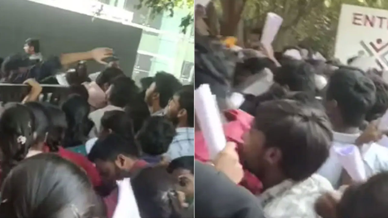మనదేశంలో నిరుద్యోగం అనేది ఎప్పట్నుంచో ప్రధాన సమస్యగా ఉంటోంది. దేశంలోని అన్ని రాష్ట్రాల్లోనూ నిరుద్యోగం కారణంగా యువత నిరాశకు గురవుతోంది. ఒక్కో ఉద్యోగానికి వేలాది మంది అభ్యర్థులు దరఖాస్తులు చేస్తున్నారు. ప్రస్తుతం వైరల్ అవుతున్న ఓ వీడియో చూస్తే నిరుద్యోగం (Un employment) ఏ స్థాయిలో ఉందో అర్థమవుతోంది. తాజాగా హైదరాబాద్లోని (Hyderabad) ఓ కంపెనీ వాక్-ఇన్ ఇంటర్వ్యూకు (Walk-in Interview) ప్రకటన ఇచ్చింది. ఆ కంపెనీ ముందు వేలాది మంది యువతీయువకులు నిలబడి ఉండడం చాలా మందికి షాక్ ఇస్తోంది.
