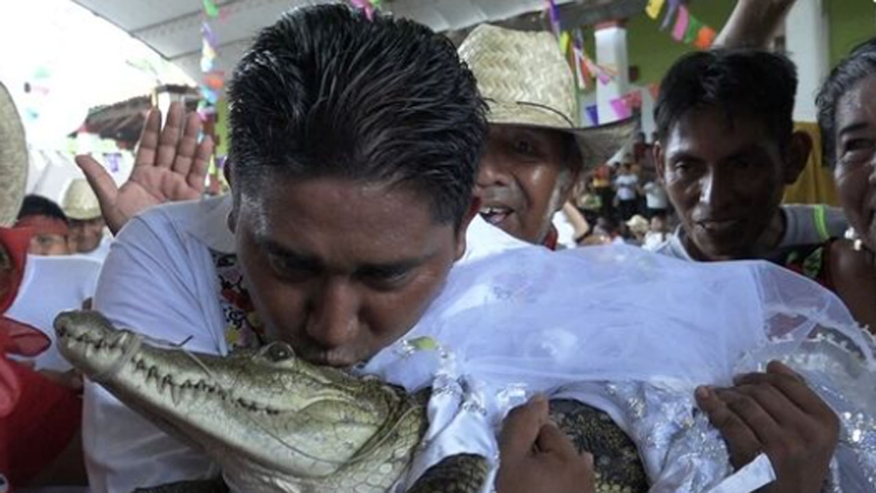 మెక్సికోలోని సాన్ పెడ్రో హువా మెలులా నగర మేయర్ విక్టర్ హ్యూగో సోనా, అలిసియా అడ్రియానా అనే ఒక ఆడ మొసలిని పెళ్లి చేసుకున్నారు. వివాహ వేడుకకు ముందు ఆ మొసలిని నగరంలోని ఇంటింటికీ తీసుకు వెళ్లారు. అనంతరం ఆ మొసలికి తెలుపు వస్త్రం తొడిగి టౌన్హాల్కు తీసుకెళ్లి వరుడికి అందించారు. మేయర్ ఆ మొసలిని సాంప్రదాయబద్ధంగా వివాహం చేసుకున్నారు. వివాహ తంతు ముగిసిన తర్వాత సాంప్రదాయబద్ధమైన సంగీతానికి వధూ వరులు నాట్యం చేశారు. మొసలి వల్ల ఎలాంటి ప్రమాదం జరగకుండా ఈ వివాహానికి ముందు మొసలి మూతికి ప్లాస్టర్ వేశారు (Mexican Mayor marries alligator).