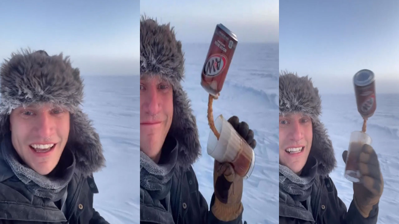 thejeffcapps అనే ఇన్స్టాగ్రామ్ యూజర్ షేర్ చేసిన ఓ వీడియో చాలా మందికి షాక్ కలిగిస్తోంది. -64 డిగ్రీల చలిలో తిరుగుతున్న జెఫ్.. క్యాన్ నుంచి బీర్ (Beer)ను గ్లాసులో వేసుకోవడానికి ప్రయత్నించాడు. ఆ సెకెండ్ల వ్యవధిలోనే బీరు గడ్డకట్టేసింది. గ్లాస్, బీర్, క్యాన్ ఒకదానికొకటి అతుక్కుపోయి ఉండిపోయాయి. అతడు మంచు కురుస్తుండగా అంటార్కిటికాలో తిరుగతూ అక్కడి పరిస్థితిని వీడియో తీశాడు. ఆ వీడియో సోషల్ మీడియాలో బాగా వైరల్ అవుతోంది. ఆ వీడియోను ఇప్పటివరకు 20 లక్షల మందికి పైగా వీక్షించారు.