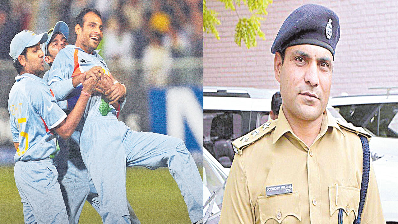 ఆ ఒక్క ఓవర్తో హీరోగా...: కెరీర్లో ఆడింది అతి తక్కువ మ్యాచ్లే అయినా జోగీందర్కు ఆ ఒక్క ప్రదర్శన ఎనలేని స్టార్డమ్ను తీసుకొచ్చింది. ఎంతలా అంటే.. తొలి టీ20 ప్రపంచకప్ విజేత భారత్ అనగానే జోగీందర్ పేరు స్ఫురించేలా. 2007లో దక్షిణాఫ్రికా వేదికగా జరిగిన ఆరంభ టీ20 ప్రపంచక్పలో భారత్ ఫైనల్ ప్రత్యర్థి పాకిస్థాన్. ఆఖరి ఓవర్లో పాక్ విజయానికి 13 పరుగులు కావాలి. క్రీజులో మిస్బావుల్ హక్ ఉన్నాడు. ఈ దశలో బంతి నందుకున్న జోగీందర్ తొలి బంతిని వైడ్గా వేసిన జోగీందర్, రెండో బంతికి సిక్సర్ ఇచ్చాడు. దీంతో పాక్ గెలుపు సమీకరణం 4 బంతుల్లో 6 రన్స్గా మారింది. అభిమానుల్లో ఉత్కంఠ.. జోగీందర్లో ఒత్తిడి మొదలైంది. అయి తే, జోగీందర్ వేసిన బంతిని స్కూప్ చేయబోయిన మిస్బా ఫైన్లెగ్ దిశగా షాట్ కొట్టాడు. అక్కడే కాచుకున్న శ్రీశాంత్ బంతిని పట్టుకోవడంతో పాక్ కథ సమాప్తమైంది.. ట్రోఫీ భారత్ సొంతమైంది. ఇలా.. ఆ ఒక్క ఓవర్తో జోగీందర్ టీమిండియా హీరోగా నీరాజనాలు అందుకున్నాడు.