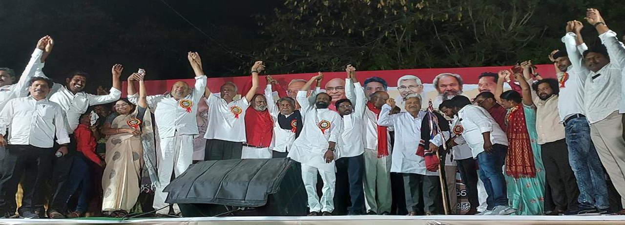 తెలంగాణ రాష్ట్రంలో దొరల పాలన సాగుతుందని ఎం ఆర్పీఎస్ వ్యవస్ధాపక అధ్యక్షుడు మందకృష్ణ మాదిగ అన్నారు. 1200 మంది అమరుల త్యాగాలతో ఏర్పడ్డ తెలం గాణలో రెడ్లు, రావులకే పదవులు కల్పిస్తున్నారని మండి పడ్డారు సీఎం కేసీఆర్ ఎన్నికల సమయంలో ప్రజలకు ఇచ్చిన హామీలను అమలు చేయడంలో విఫలమయ్యా రన్నారు. అంతకుముందు కళాకారులు పాటలు పాడి అలరించారు. గద్దర్ పాడిన పాటలు ఆకట్టుకోవడంతో పాటు సభకు హాజరైన వారిని ఉత్సాహ పరిచాయి. కాగా సినిమా దర్శకుడు నారాయణమూర్తిని సీపీఐ జాతీయ కార్యదర్శి నారాయణ, చాడ వెంకట్రెడ్డిలు సన్మానించారు. ఎంఆర్ పీఎస్ వ్యవస్ధాపక అధ్యక్షుడు మందకృష్ణ మాదిగ, ప్రజా గాయకుడు గద్దర్, సురేందర్, కళాకారులు, పాల్గొన్నారు.