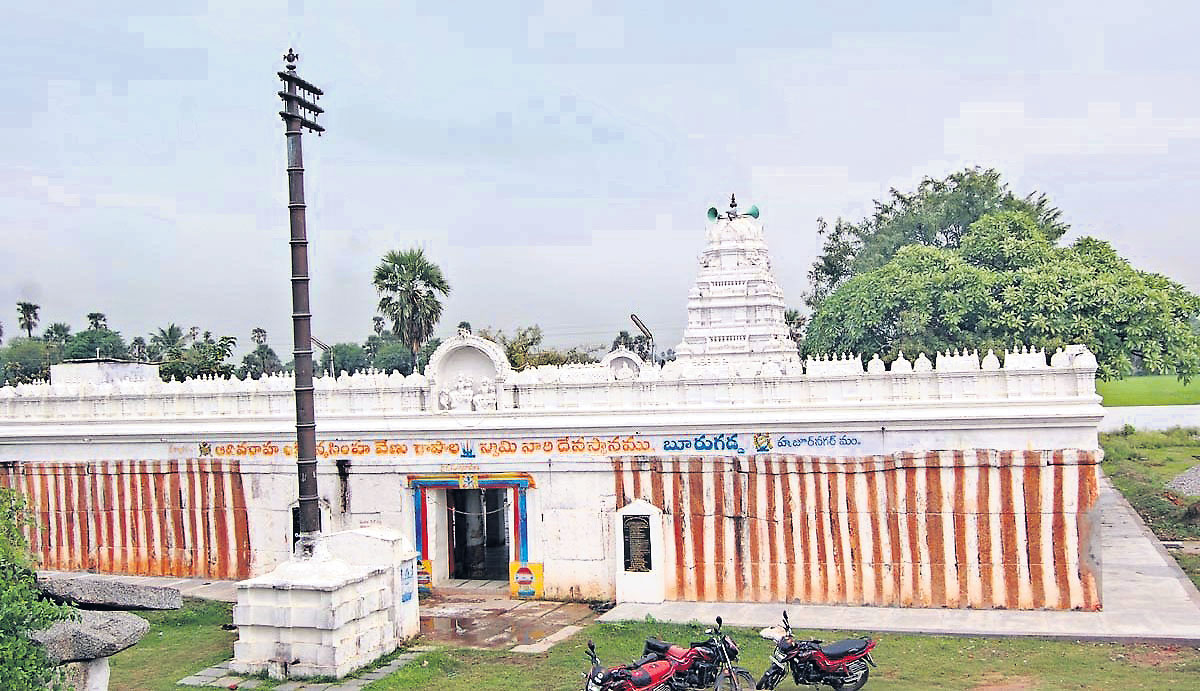 సూర్యాపేట జిల్లా హుజూర్నగర్ మండలంలోని బూ రుగడ్డలో కొలువైన శ్రీశాల్మలీకంద శ్రీఆదివారాహ, శ్రీలక్ష్మీనర్సింహ, శ్రీవేణుగోపాలస్వామి దేవాలయం ఆధ్యాత్మి క శోభతో విరాజిల్లుతోంది. భృగు మహర్షి నడయాడిన నేల. భృగుమహర్షి తపస్సు చేసిన ప్రాంతం కావడంతో బూరుగడ్డగా ఈ ప్రాంతం వాసికెక్కింది. దీంతో పాటు కాకతీయుల కాలంలోనే 116 శివాలయాలు ఉన్న ఆధ్యాత్మిక కేంద్రంగా వర్థిల్లింది. ఈ దేవాలయంలో ఒకే పీఠంపై ముగ్గురు దేవతామూర్తులు కొలువు దీరడంతో పాటు నాలుగో దేవదేవుడు అనంతపద్మనాభస్వామి యోగ నిద్రలో ఉన్న విగ్రహం సాక్షాత్కరిస్తుంది.