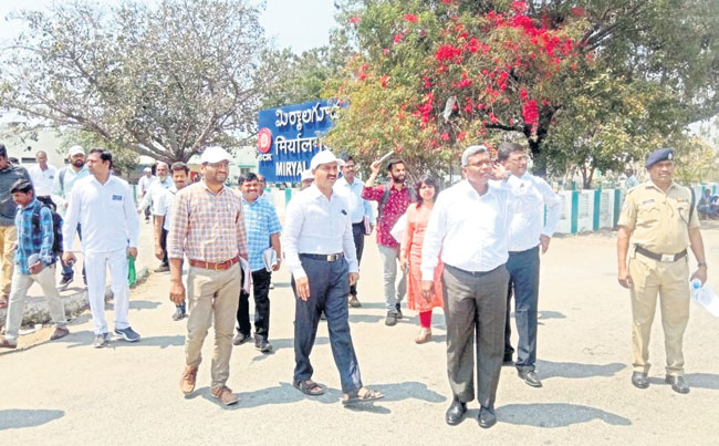 మిర్యాలగూడ టౌ న, ఫిబ్రవరి 5: పట్టణంలోని రైల్వేస్టేషనను డీఆర్ఎం రామకృష్ణ ఆదివారం సందర్శించారు. అమృత భారత కార్యక్రమంలో భాగంగా అభివృ ద్ధి చేస్తున్న స్టేషన్లను ప రిశీలిస్తున్న క్రమంలో మి ర్యాలగూడకు వచ్చినట్లు తెలిపారు. స్టేషన పరిధిలో నూతనంగా చేపట్టాల్సిన పనులను ఉన్నతాధికారుల తో కలిసి సమీక్షించారు. స్టేషనకు వచ్చే రహదారులు, ప్రయాణికులు వేచి ఉండే స్థలాలను మరింత అభివృద్ధి చేయాలని, స్టేషన ముందు గ్రీనరీ పెంచాలని అధికారులకు సూచించారు. ఆయన వెంట ఇంజనీరింగ్ బృందాలతో పాటు స్టేషన మాస్టర్ తారకేశ్వర్రావు తదితరులు పాల్గొన్నారు.