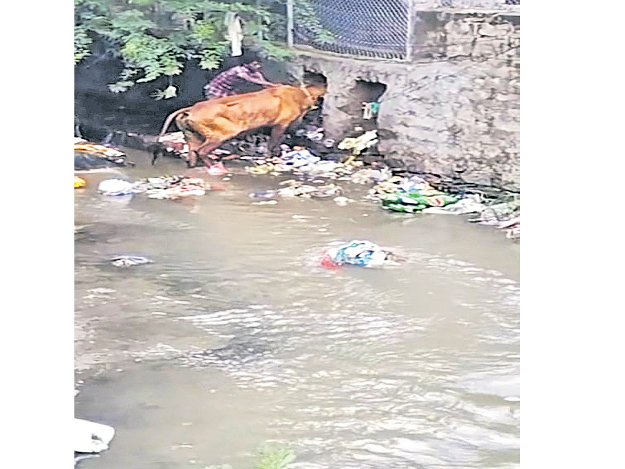 మెట్టుగూడ డివిజన్ ఆలుగడ్డ బావి ముత్యాలమ్మ ఎల్లమ్మ ఆలయం వద్ద ప్రవహించే నాలాలో మంగళవారం ప్రమాదవశాత్తు ఆవు పడింది.