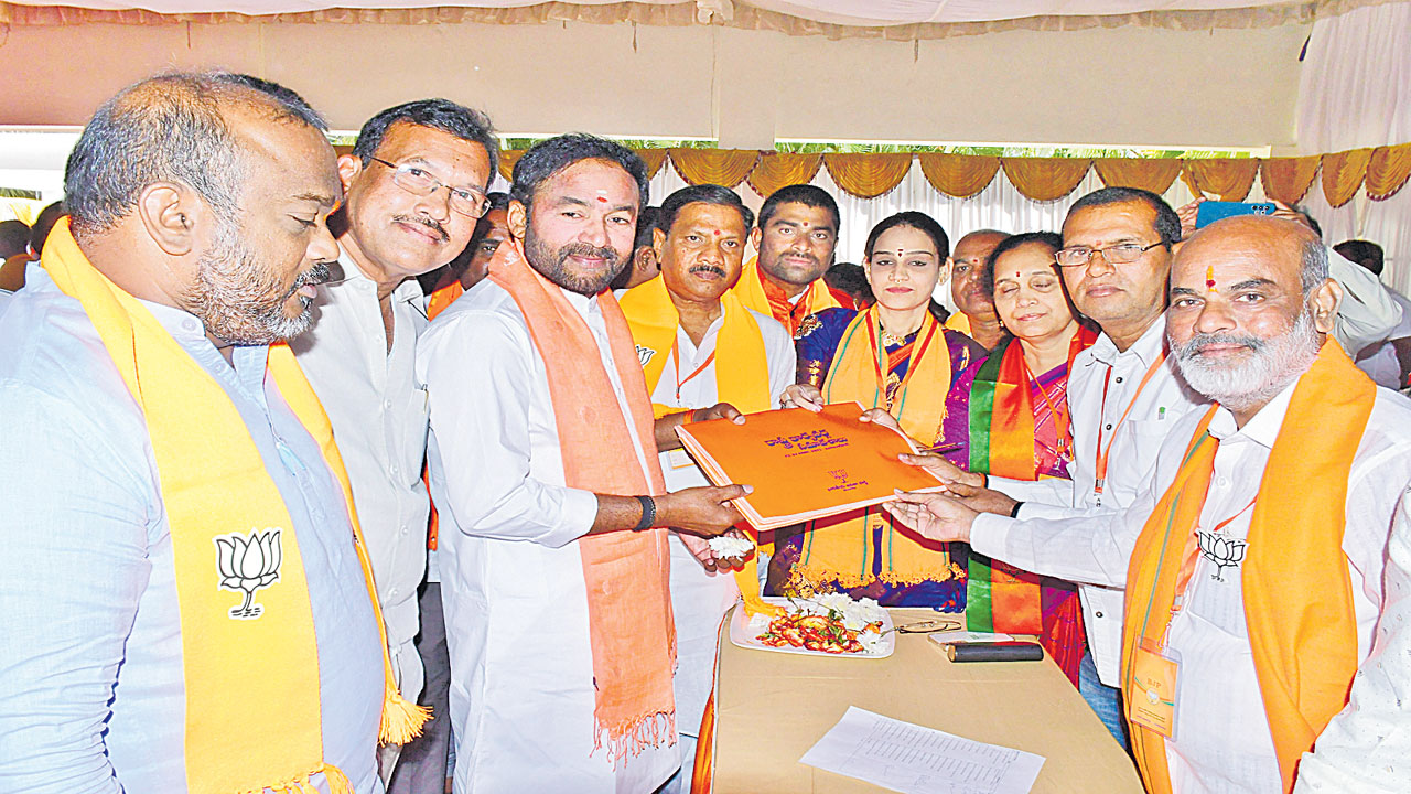 తెలంగాణలో ప్రజలు పూర్తి నిరాశ, నిస్పృహల్లో ఉన్నారని చెప్పారు. బీజేపీ కార్యవర్గ సమావేశ తీర్మానాలపై ప్రజలు ఆసక్తిగా ఎదురు చూస్తున్నారన్నారు. ప్రజలు మార్పును కోరుకుంటున్నారని, ఈ సారి బీజేపీకి అధికార పగ్గాలు అందజేయనున్నారని సంజయ్ ధీమా వ్యక్తం చేశారు. 317 జీవో పేరుతో ఉపాధ్యాయులను ఇబ్బంది పెడితే సహించేది లేదని, సమస్యను పరిష్కరించకపోతే ఈ నెల 30న ఇందిరాపార్కు వద్ద బీజేపీ ఆధ్వర్యంలో ధర్నా నిర్వహిస్తామని హెచ్చరించారు. బీజేపీ నాయకులు సొంత మైలేజీ కోసం పనిచేయవద్దని, మోదీ నాయకత్వంలో పార్టీ జెండాను ప్రజల్లోకి తీసుకెళ్లేవారే అసలైన నాయకులని సూచించారు. ‘‘తెలంగాణకు కేంద్రం ఏం చేసిందనే అంశంపై పూర్తి గణాంకాలతో నివేదిక తయారు చేస్తున్నాం. ప్రముఖులను ఆహ్వానించి చర్చిస్తాం. జిల్లాల్లో ఈ వివరాలు వెల్లడిస్తాం. మోదీ తెలంగాణకు ఎంత ప్రాధాన్యం ఇస్తున్నారనే అంశంపై లెక్కలతో సహా ప్రజల్లోకి వెళ్లి వివరిస్తాం’’ అని కేంద్ర మంత్రి కిషన్రెడ్డి అన్నారు. బీఆర్ఎస్ పచ్చి అబద్ధాలు చెబుతూ కాలం వెళ్లదీస్తోందని విమర్శించారు. రాష్ట్రంలోని పార్టీ 11 వేల శక్తి కేంద్రాల పరిధిలో 11 వేల కార్నర్ మీటింగులు నిర్వహించి, కేంద్రం అమలు చేస్తున్న పథకాలను ప్రజలకు వివరించాలని నిర్ణయించినట్లు జితేందర్రెడ్డి తెలిపారు.