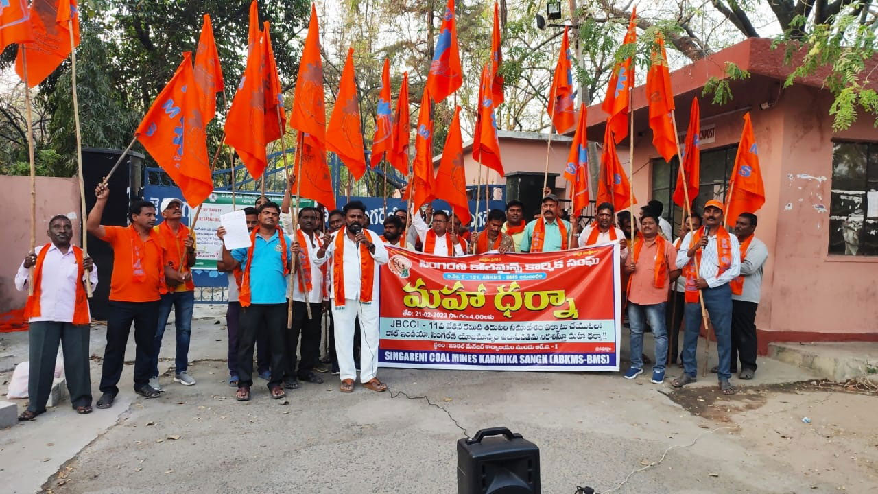 జేబీసీసీఐ తదుపరి సమావేశం ఏర్పాటు చేయాలంటూ బీఎంఎస్ ఆధ్వర్యంలో ఆర్జీ-1 జీఎం కార్యాలయం ఎదుట మహాధర్న నిర్వహించారు.