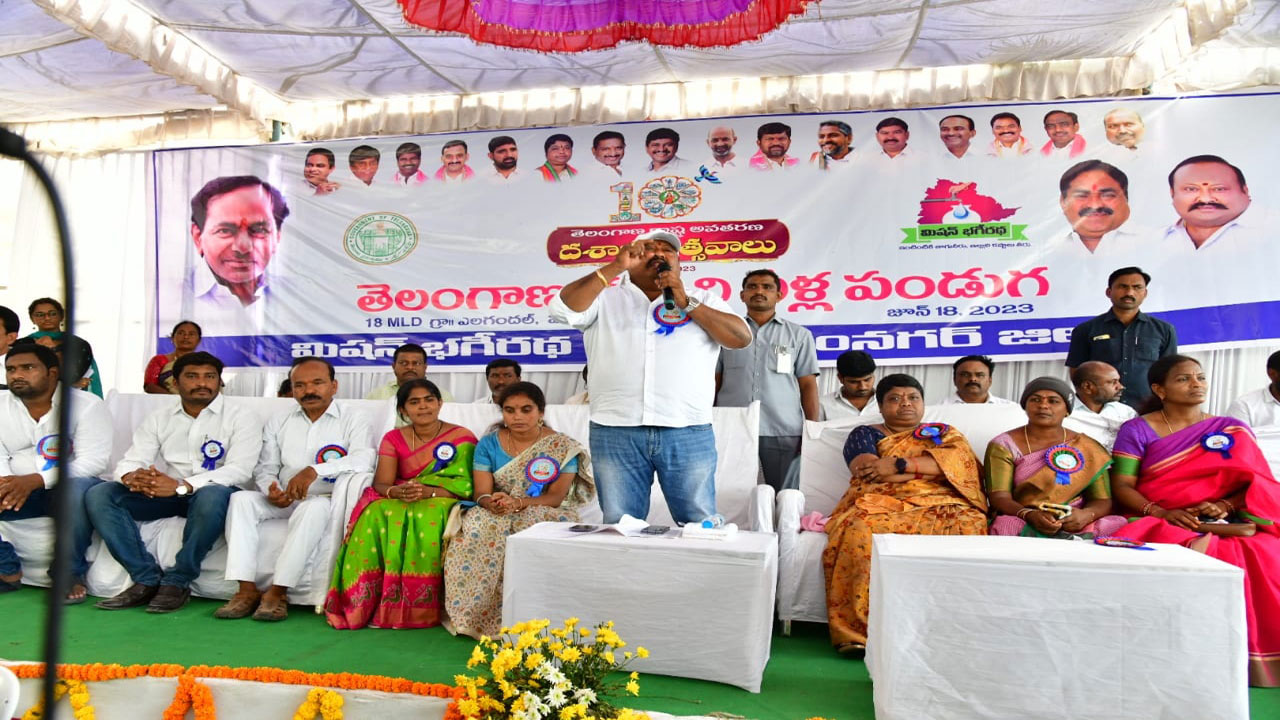 కరీంనగర్ రూరల్, జూన్ 18: రాష్ట్రంలో మిషన్ భగీరథ పథకంతో ప్రతి పల్లెకు శుద్ధమైన తాగునీరు అందుతుందని రాష్ట్ర బీసీ సంక్షేమ, పౌర సరఫరాల శాఖ మంత్రి గంగుల కమలాకర్ అన్నారు. ఆదివారం కొత్తపల్లి మండలం ఎలగందల్ గ్రామంలో తెలంగాణ ఆవిర్భావ దశాబ్ధి ఉత్సవాల్లో భాగంగా మంచినీళ్ల పండుగను ఘనంగా నిర్వహించారు. ఈ సందర్భంగా ఆయన మాట్లాడుతూ రాష్ట్రంలో శాశ్వతంగా నీటి కష్టాలను తొలగించేందుకు 2015లో రాష్ట్ర ప్రభుత్వం మిషన్ భగీరథ పథకాన్ని ప్రవేశపెట్టిందన్నారు. ఈ పథకం కింద గ్రామీణ ప్రాంతాల్లో 100 లీటర్లు, మున్సిపాలిటీలలో 135 లీటర్లు, కార్పోరేషన్ పరిధిలో 150 లీటర్ల నీటిని ప్రతి ఒక్కరికి అందిస్తున్నామని తెలిపారు. కార్యక్రమంలో జడ్పీ చైర్పర్సన్ కనుమల్ల విజయ, మిషన్ భగీరథ చీఫ్ ఇంజనీర్ అమరేందర్, ఈఈ రామ్కుమార్, డీఏవో నాగ సిద్దేశ్వర్, ఎంపీపీలు పిల్లి శ్రీలతమహేష్, తిప్పర్తి లక్ష్మయ్య, కొత్తపల్లి మున్సిపల్ ఛైర్మన్ రుద్రరాజు, మార్కెట్ కమిటీ ఛైర్మన్ రెడ్డవేణి మధు, సర్పంచ్ ఎల్దండి షర్మిల, ఎంపిటీసీ మంద రమేష్ పాల్గొన్నారు