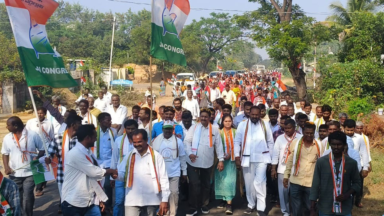 ఓదెల, నవంబరు 19 : రెండుసార్లు బీఆర్ఎస్కు ఓటు వేస్తే హైదరా బాద్లో కోట్లాది విలువ చేసే భూములు అమ్ముకున్నారని, మళ్లీ ఓటేస్తే రాష్ట్రాన్ని అమ్ముకుంటారని కాంగ్రెస్ అభ్యర్థి చింతకుంట విజయరమణా రావు అన్నారు. మండలంలోని గుండ్లపల్లి, కనగర్తి, మడక, పొత్కపల్లి, లంబాడితండా, అబ్బిడిపల్లి గ్రామాల్లో ఆదివారం విజయరమణారావు ప్ర చారం నిర్వహించారు. ప్రజలు మంగళహారతులతో ఘనస్వాగతం పలికా రు. అనంతరం కూడళ్లలో మాట్లాడుతూ వేల కోట్ల విలువచేసే సహజ సంపదను ఎమ్మెల్యేతోపాటు రాష్ట్ర ప్రభుత్వం దోచుకుందన్నారు. నియోజ కవర్గంలో ముఖ్యంగా ఓదెల మండలంలో ఇసుక రీచ్ల వల్ల మానేరు పరివాహక ప్రాంతాల ప్రజలు నరకయాతన అనుభవించారని తెలిపారు. ఇసుకతో ప్రజలకంటే ఎక్కువ ఇక్కడ ఉన్న బీఆర్ఎస్ నాయకులంతా మధ్య దళారులతో లక్షల రూపాయలు అక్రమంగా సంపాదించారని, గ్రా మాల్లో రైతుల బతుకులను ఆగం చేశారన్నారు. గ్రూప్-1 పేరుతో యువ తను మోసం చేశారని, ఇంటికో ఉద్యోగం పేరుతో రాష్ట్రంలో నిరుద్యోగాన్ని పెంచారని తెలిపారు. నియోజకవర్గంలో అన్ని రకాలుగా ప్రజలు మోసపోతున్నారని ప్రశ్నించిన వారిని పోలీ సులతో బెదిరించిన చరిత్ర ఉందన్నారు. రెండుసార్లు ఓడినా కూడా ప్రజలకు అండగా నిలిచానని రైతులకు అందుబాటు లో ఉండి సాగునీటి కోసం కష్టపడ్డానన్నారు. అధికారంలో ఉన్న ఎమ్మెల్యే అయినా, కేసీఆర్ అయినా రైతులకు పంట నష్టపరిహరం అందించలేకపోయారన్నారు. ఎమ్మెల్యేతోపాటు ప్రభుత్వానికి ఓటమిభయం పట్టుకుందని, దీంతో నకిలీ పత్రా లు సృష్టించి తప్పుడు ప్రచారంతో ప్రజలను మోసం చేయాల ని చూస్తున్నారన్నారు. కాళేశ్వరం నీరు ఈప్రాంత రైతులకు ఉపయోగం లేకున్నా అక్కడి విద్యుత్ బిల్లులు, నీటిపన్ను ఈ నియోజకవర్గ ప్రజలపై రుద్దుతున్నారని తెలిపారు. అలాగే మద్యం టెండర్ల ద్వారా వచ్చిన వేల కోట్లను ఎన్నికలకు ఉప యోగించుకొని ఓట్ల కొనుగోలు పాల్పడుతున్నా రని తెలిపారు. కాంగ్రెస్ ప్రకటించిన ఆరు గ్యా రంటీ పథకాలను గెలిచిన వెంటనే అమలుచే సి తీరుతామన్నారు. అక్రమాలు లేని పాలన, దళారీ వ్యవస్థ లేని పాలన అందించేందుకు రాష్ట్రంలో కాంగ్రెస్ పార్టీ సిద్ధంగా ఉందన్నారు. హస్తం గుర్తుకు ఓటువేసి భారీ మెజార్టితో గెలి పించాలని కోరారు. సాగర్రెడ్డి, పుప్పాల శంక ర్, ఆళ్ల సుమన్రెడ్డి, చొప్పరి రాజయ్య, కోట నిరంజన్రెడ్డి, రెడ్డి రజనికాంత్, గోసిక రాజేశం, అంబాల కొమురయ్య, శ్రీనివాస్ పాల్గొన్నారు.