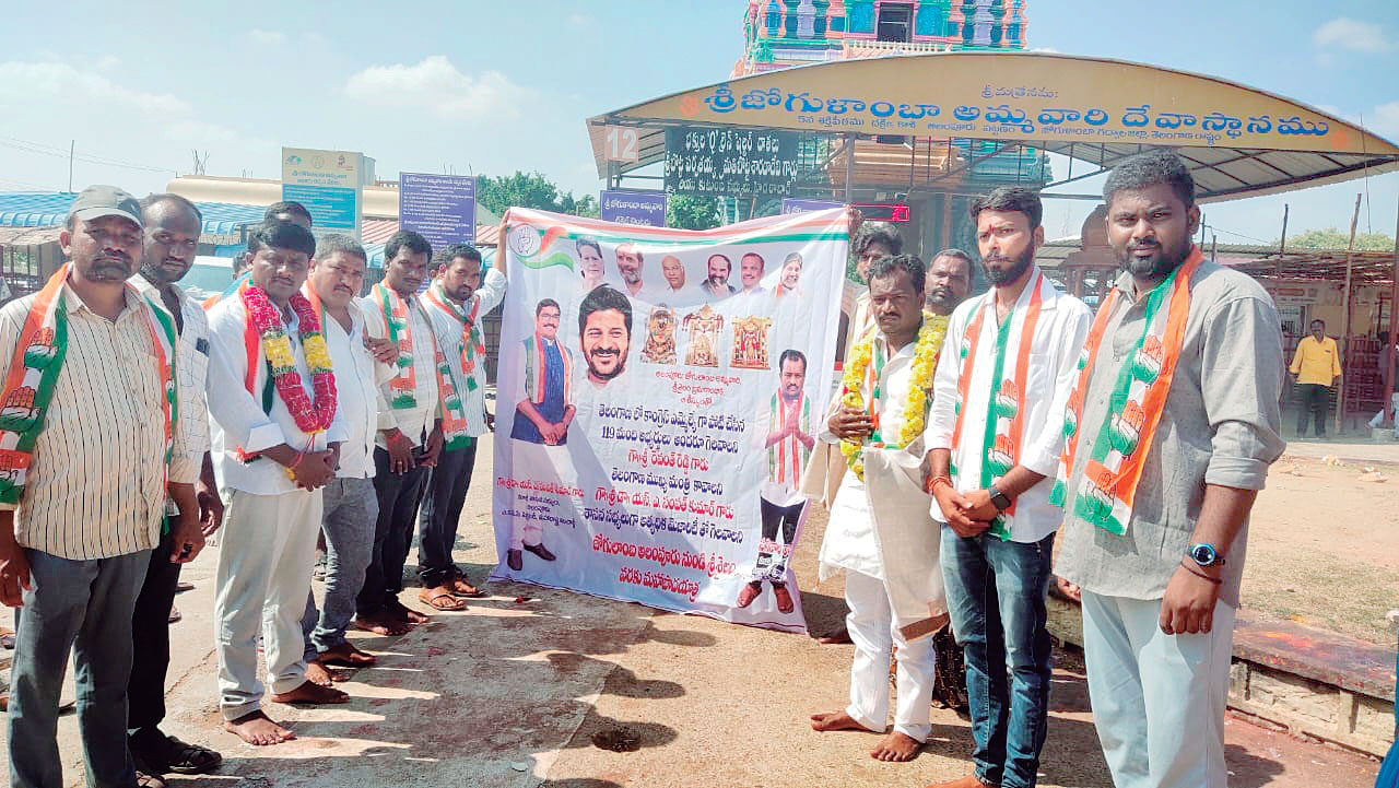 అలంపూర్, డిసెంబరు 1 : కాంగ్రెస్ పార్టీ అలంపూర్ నియోజకవర్గ అభ్యర్థి సంపత్కుమార్ భారీ మెజార్టీతో గెలవాలని కోరుతూ అలంపూర్ మండల పరిధిలోని లింగనవాయి గ్రామానికి చెందిన కాంగ్రెస్ నాయకులు, కార్యకర్తలు శ్రీశైలం క్షేత్రానికి పాదయాత్ర చేపట్టారు. శుక్రవారం ఉదయం వారు అలంపూర్కు చేరుకొని జోగుళాంబ, బాల బ్రహ్మేశ్వర స్వామివార్లను దర్శించుకుని, 101 టెంకాయలు కొట్టారు. అనం తరం సగినల రాజు ఆధ్వర్యంలో అలంపూర్ పట్టణంలోని గాంధీ చౌక్ నుంచి పాదయాత్రను ప్రారంభించారు. ఈ సందర్భంగా వారు మాట్లా డుతూ తెలంగాణ ప్రజలు మార్పు కోరుకున్నారని, రాష్ట్రంలో కాంగ్రెస్ పార్టీ అధికారంలోకి రాబోతుందని ధీమా వ్యక్తం చేశారు. కార్య క్రమంలో నాయకులు గోకారి, శ్రీధర్, టి.మహేష్, ఇస్మాయిల్, పాండు, వెంకటేష్, రాజశేఖర్, పెద్ద తిప్పన్న, స్వాములు, రామకృష్ణ పాల్గొన్నారు.
