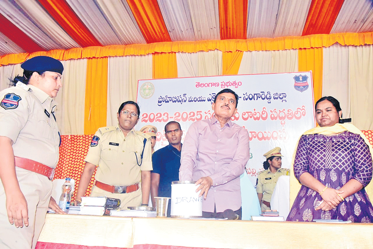 సంగారెడ్డి టౌన్/మెదక్ అర్బన్, ఆగస్టు 21: కొత్త మద్యం పాలసీ 2023-25కి సంబంధించి దుకాణాల కేటాయింపు ప్రక్రియ సోమవారం ప్రశాంతంగా ముగిసింది. సంగారెడ్డి, మెదక్, సిద్దిపేటల్లో నిర్వహించిన లక్కీడ్రాలో అదృష్టవంతులు షాపులను దక్కించుకున్నారు. సంగారెడ్డి జిల్లాలోని 101 మద్యం దుకాణాలకు 6,156 దరఖాస్తులు వచ్చిన విషయం తెలిసిందే. సంగారెడ్డిలోని జేఆర్ఆర్ ఫంక్షన్హాల్లో జిల్లా కలెక్టర్ ఎ.శరత్ స్వయంగా లాటరీ తీసి దుకాణాలను కేటాయించారు. ఉదయం 10 గంటల నుంచి ప్రారంభమైన లాటరీ ప్రక్రియ సాయంత్రం 6 గంటల వరకు కొనసాగింది. వేలాది మంది తరలిరావడంతో 65వ నంబరు జాతీయ రహదారిపై వాహనాల రాకపోకలకు తీవ్ర ఇబ్బందులు తలెత్తాయి. ఎక్సైజ్ డిప్యూటీ కమిషనర్ హరికిషన్, సూపరింటెండెంట్ గాయత్రి తదితరులు పాల్గొన్నారు.