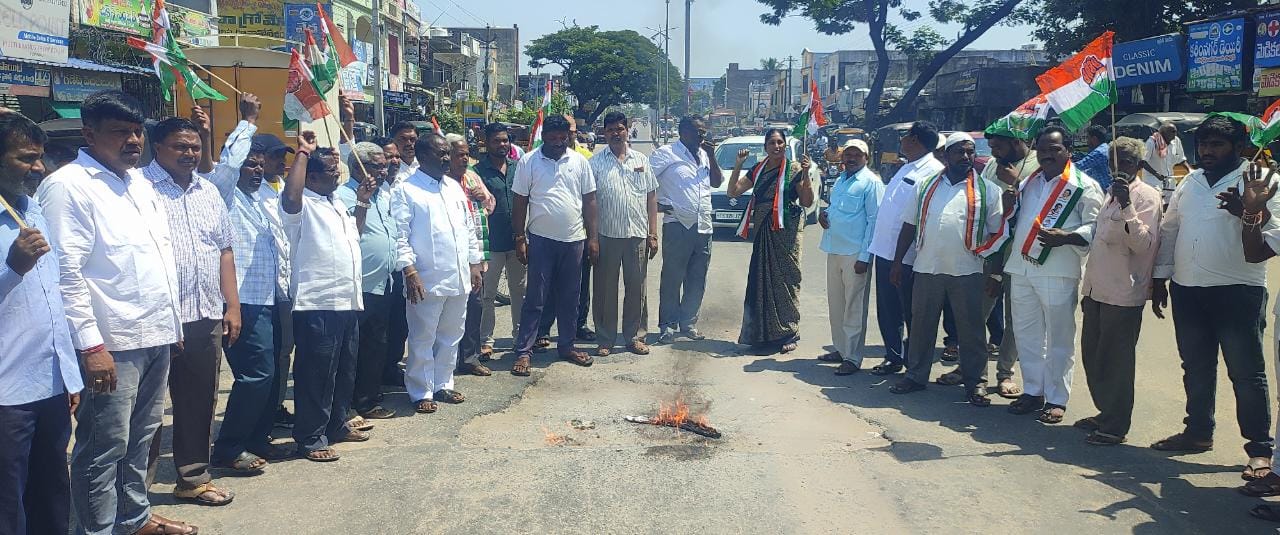ప్రధాని మోదీకి కాంగ్రెస్ నేతల హితవు హుస్నాబాద్లో మోదీ దిష్టిబొమ్మ దహనం