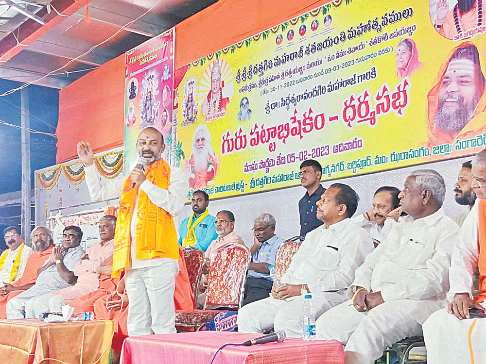 ఝరాసంగం, ఫిబ్రవరి 20 : ప్రతీ హిందువూ ధర్మ పరిరక్షణ కోసం కృషి చేయాలని బీజేపీ రాష్ట్ర అధ్యక్షుడు బండి సంజయ్ పేర్కొన్నారు. మండల పరిధిలోని బర్ధీపూర్ ఆశ్రమంలో దత్తగిరి మహరాజ్ శత జయంతి మహోత్సవం సోమవారం సాయంత్రం ఘనంగా నిర్వహించారు. కార్యక్రమానికి ఆయన ముఖ్య అతిథిగా హాజరయ్యారు. ఆలయ అర్చకులు వేదమంత్రోచ్ఛారణలు, మంగళవాయిద్యాల మధ్య పూర్ణకుంభంతో స్వాగతం పలికారు. అనంతరం ఆయన ఆశ్రమంలోని జ్యోతిర్లింగాలకు ప్రత్యేక పూజలు నిర్వహించారు. అనంతరం జ్యోతి ప్రజ్వలన చేసి ఉత్సవాలను ప్రారంభించారు. ఈ సందర్భంగా మాట్లాడుతూ కులమతాలకు అతీతంగా ఆశ్రమంలోని వైదిక పాఠశాలలో విద్యార్థులను అర్చకులగా తీర్చిదిద్దుతుండడం అభినందనీయమని కొనియాడారు. భగవంతుడి దృష్టిలో అందరూ సమానమేనని, విద్యార్థులు రాజ్యంగ నిర్మాత బాబాసాహెబ్ అంబేడ్కర్ను స్ఫూర్తిగా తీసుకుని జ్ఞాన సమూపార్జణ చేయాలని సూచించారు. కొంతమంది ధర్మ విరోధులు స్వార్థ ప్రయోజనాల కోసం హిందూ సమాజాన్ని చీల్చేందుకు కుట్రలు చేస్తున్నారని, అలాంటివారికి సరైన గుణపాఠం చెప్పలని పిలుపునిచ్చారు. భారత దేశం ప్రపంచానికే మార్గం చూపుతున్న జ్ఞాన కిరణమని పేర్కొన్నారు. తల్లిదండ్రులకు సేవ చేస్తే భగవంతుడికి చేసినంత ఫలితం దక్కుతుందని అన్నారు. అనంతరం ఆశ్రమ పీఠధిపతి వైరాగ్య శిఖమణి అవదూతగిరి మహరాజ్, డాక్టర్ సిద్దయ్యస్వామి ఆయనను శాలువా, పూలమాలలతో ఘనంగా సన్మానించారు. కార్యక్రమంలో మాజీ మంత్రులు బాబూమోహన్, చంద్రశేఖర్, బీజేపీ రాష్ట్ర అధికార ప్రతినిధి సంగప్ప, సామాజికవేత్త అప్పల ప్రసాద్, నాయకులు నరేందర్రెడ్డి, మల్లికార్జున్, అడివన్న తదితరులు పాల్గొన్నారు.