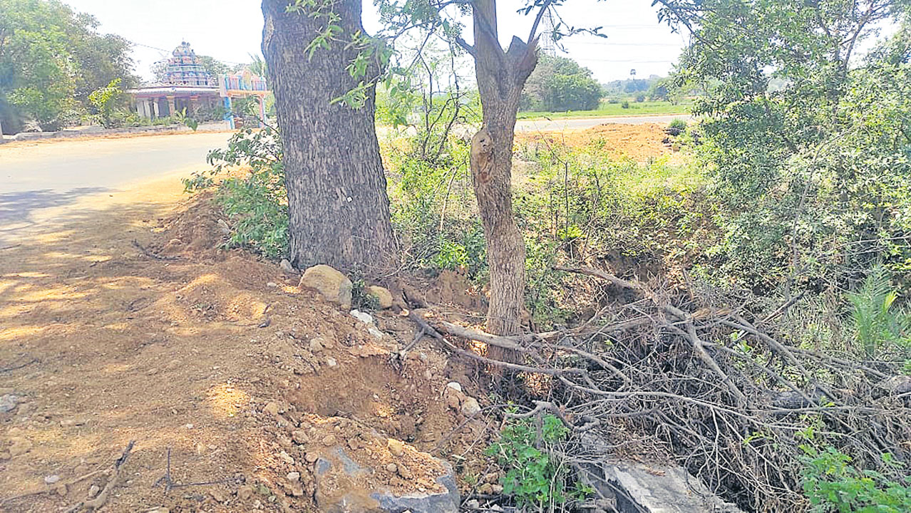 రోడ్డు పక్కనే వ్యవసాయ బావులు