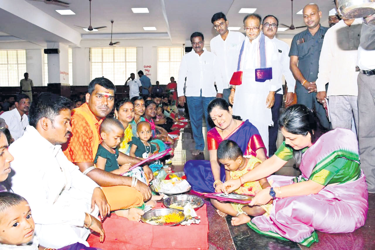 యాదగిరిక్షేత్రంలో రాష్ట్ర అవతరణ దశాబ్ధి ఉత్సవాల్లో భాగంగా శనివారం సామూహిక ఉచిత అక్షరాభ్యాస కార్యక్రమం సంప్రదాయరీతిలో కొనసాగింది. కొండకింద సత్యనారాయణస్వామి వ్రత మండపం రెండో హాల్లో ఉదయం 10గంటలకు దేవస్థాన పురోహుతులు, వేదపండితులు విఘ్నేశ్వరుడికి తొలి పూజలతో చదువుల తల్లి సరస్వతీ అమ్మవారిని కొలిచారు. అనంతరం విద్యార్థులతో తల్లితండ్రులు శాస్త్రోక్త పూజల నడుమ అక్షరాభ్యాసం చేయించారు. ఈ విశేష పూజల్లో పాల్గొన్న ఆలయ అనువంశిఖ ధర్మకర్త బి.నరసింహమూర్తి, ఈవో గీతారెడ్డి, కలెక్టర్ పమేలాసత్పథి తదితరులు చిన్నారులతో అక్షరాలు దిద్దించారు. యాదగిరీశుడిని సీఐడీ ఎస్పీ గంగారామ్, ఐఏఎస్ అధికారి విజయేంద్రజోషి దర్శించుకున్నారు. స్వయంభువులను దర్శించుకుని సువర్ణ పుష్పార్చన పూజల్లో పాల్గొన్నారు.