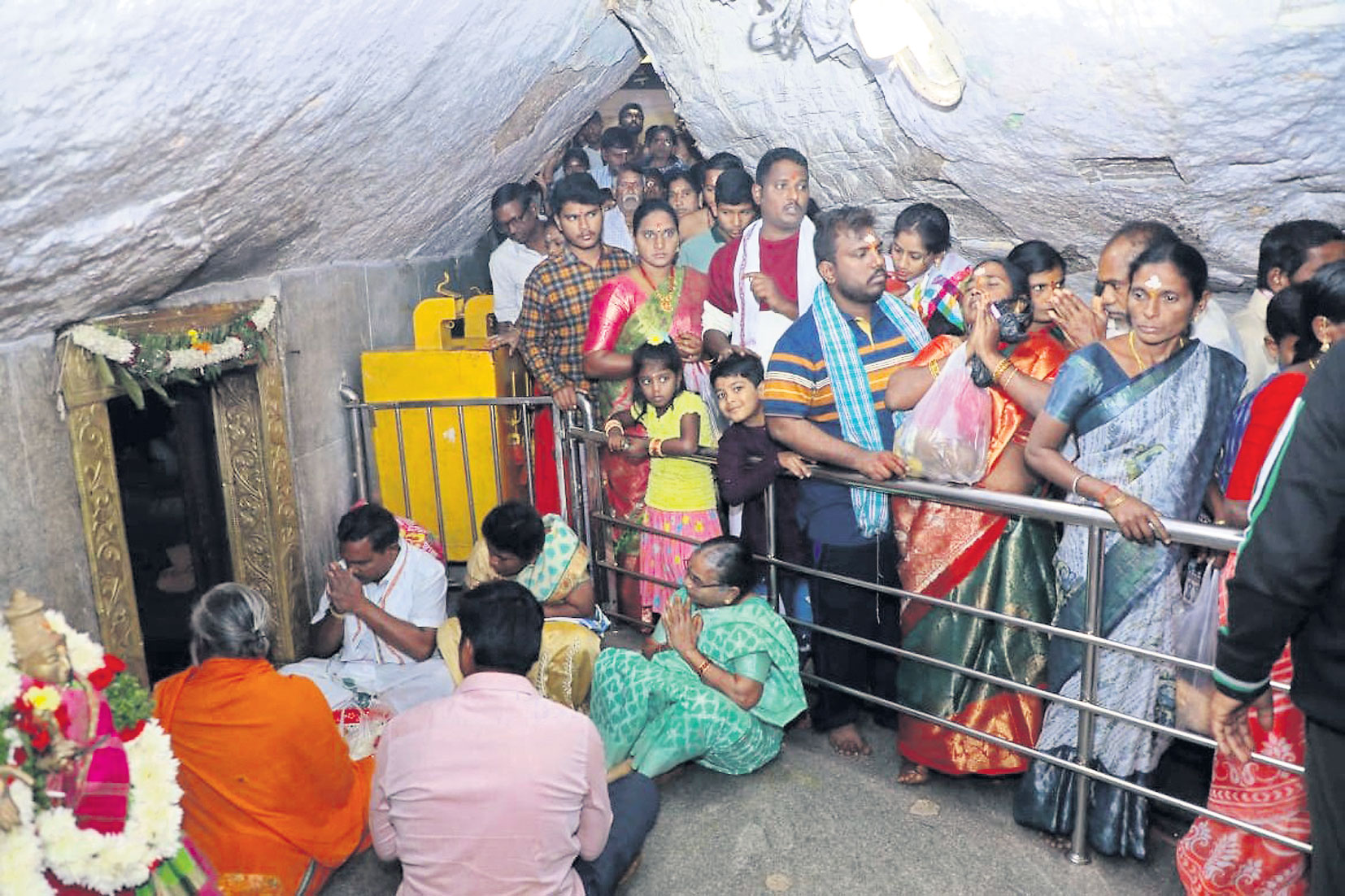 నార్కట్పల్లి, డిసెంబరు 11: కార్తీక మాసం చివరి సోమవారం కావడంతో మండలంలోని చెర్వుగట్టు పార్వతీ జడల రామలింగేశ్వర స్వామి దేవస్థానం భక్తులతో కిటకిటలాడింది. ఉదయం నుంచే ఆలయానికి చేరుకున్న భక్తులు స్వామివారి నిజాభిషేకం నుంచే దర్శనానికి క్యూ కట్టారు. స్వామివారి పుష్కరిణిలో పుణ్యస్నానాలు ఆచరించి కొండపై కార్తీక దీపాలు వెలిగించారు. సామూహిక సత్యదేవుడి వ్రతాలు ఆచరించారు. మహామండపంలో సామూహిక లింగాభిషేకాలు నిర్వహించారు. కాగా పోలీస్ సిబ్బంది లేక నియంత్రణ కొరవడటంతో వాహనాలు ఇష్టారీతిన కొండపైకి చేరడంతో ఘాట్రోడ్పై ట్రాఫిక్ సమస్య ఏర్పడింది. దీంతో భక్తులు ఇబ్బందులు పడ్డారు. కొండపై ఆటోలు నిలిపే ప్రదేశం వద్ద ఉన్న మరుగుదొడ్ల బ్యాక్ నుంచి దుర్వాసన వెదజల్లడంతో భక్తులు అసౌకర్యానికి గురయ్యారు.