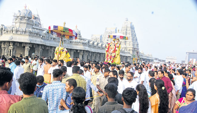 ముక్కోటి ఏకాదశి పర్వదినం రోజు ఇష్టదైవాన్ని దర్శించుకునేందుకు పెద్దఎత్తున తరలివచ్చారు. ఏర్పాట్లు సరిగా లేకపోవడంతో భక్తులు ఇబ్బందులు పడ్డారు. ఆలయ పునర్నిర్మాణంలో భాగంగా ప్రధానాలయం చుట్టూ నాలుగు వైపులా కృష్ణరాతితో నాలుగు పంచతల రాజగోపురాలు నిర్మించారు. దీంతో ఈ ఏడాది యా దగిరి క్షేత్రంలో ఉత్తర ముఖద్వారం చెంత వైకుంఠనాథుడి అలంకా రసేవలో భక్తులు దర్శించుకునే విధంగా ఏర్పాట్లు చేశారు.ఆలయ ఉద్ఘాటన అనంతరం ఎన్నడూ లేని విధంగా స్వామివారు వైకుంఠ ద్వారంలో దర్శనమివ్వనుండంతో రాష్ట్ర నలుమూలల నుంచే కాకుండా పలు ప్రాంతాల నుంచి భక్తులు పెద్దసంఖ్యలో తరలివచ్చారు. ప్రధానాలయ ఉత్తర పంచతల రాజగోపురం చెంత స్వామివారి అలంకారసేవ, ఆళ్వారాచార్యుల సేవలను అధికారులు ప్రత్యేక వేదికపై తీర్చిదిద్దారు. దేవదేవుడిని ముక్కోటి ఏకాదశి శుభ గడియల్లో దర్శించుకునేందుకు భక్తులు నానాపాట్లు పడ్డారు. ముక్కోటి వేడుకలను వీక్షించేందుకు ప్రభాతవేళ సుమారు 20నుంచి 25వేల మంది భక్తులు క్షేత్రానికి తరలివచ్చారు. ఉత్తర ద్వారం చెంత అధికారులు చేసిన ఏర్పాట్లు అంతంతమాత్రంగానే ఉండడం, గతంలో మా దిరిగా దర్శన క్యూలైన్ ఏర్పాటు లేకపోవడంతో భక్తులు గుంపులు గుంపులుగా అలంకారసేవను దర్శించుకునేం దుకు ఎగబడ్డారు. అధికారులు నామమాత్రంగా ఏర్పాట్లు చేశారని, దీంతో స్వామివారిని దర్శించుకునేందుకు వ్యయప్రయాసలు పడాల్సివచ్చిందని భక్తులు వాపోయారు. గతంలో అలంకార సేవను వేదికపై ఏర్పాటుచేసిన పీటపై ఉంచేవారని, ఈసారి కూడా అలాచేస్తే నృసింహుడి దర్శనభాగ్యం అయ్యేదని అభిప్రాయం వ్యక్తం చేశారు.