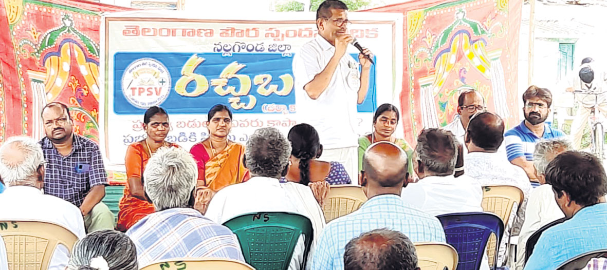 శాలిగౌరారం, జూన్ 6: ప్రభుత్వ పాఠశాలలను కాపాడుకోవాల్సిన బాధ్యత ప్రజలదేనని ఎమ్మెల్సీ అలుగుబెల్లి నర్సిరెడ్డి అన్నారు. ‘ప్రభుత్వ బడులను ఎవరు కాపాడాలి? ప్రభుత్వ బడికి పిల్లలు ఎందుకు రావడం లేదు?’ అనే అంశాలపై తెలంగాణ పౌరస్పందన వేదిక నల్లగొండ జిల్లా కమిటీ ఆధ్వర్యంలో మండలంలోని చిత్తలూరులో నిర్వహించిన రచ్చబండ కార్యక్రమంలో మాట్లాడారు. ప్రాశ్చాత్య దేశంలో పాఠశాల విద్యారంగం 90శాతం పైగా ప్రభుత్వ ఆధీనంలో ఉంటుందన్నారు. కానీ తెలంగాణలో మాత్రం ప్రభుత్వం పాఠశాలపై శ్రద్ధచూపడం లేదని, పాఠశాలల్లో విద్యార్థుల సంఖ్య తగ్గుతోందని ఆందోళన వ్యక్తం చేశారు. విద్యార్థుల తల్లిదండ్రులందరూ తమ పిల్లలను ప్రభుత్వ పాఠశాలలో పంపించాలని కోరారు. ప్రజాప్రతినిధులంతా ప్రభుత్వ పాఠశాలల బలోపేతానికి కృషి చేయాలని, నాణ్యమైన విద్య కోసం ప్రభుత్వ పాఠశాలల పటిష్ఠత కోసం ప్రభుత్వంపై ఒత్తిడి తీసుకురావాలని కోరారు. కార్యక్రమంలో తెలంగాణ పౌరస్పందన వేదిక జిల్లా అధ్యక్షులు పాల్వాయి అంజిరెడ్డి, జడ్పీటీసీ ఎర్ర రణీల, సర్పంచు మామిడికాయల జయమ్మ, ఎంపీటీసీ దాసరి ప్రమీల, పాదూరి శంకర్రెడ్డి, మాజీ సర్పంచులు తీర్నాయకం సోమయ్య, గుడిపల్లి రాంరెడ్డి, బొమ్మగాని రవి, దాసరి దేవచిత్తం, టీఎ్సయూటీఎఫ్ రాష్ట్ర ఆడిట్కమిటీ సభ్యులు జె. యాకయ్య, జిల్లా కార్యదర్శి వై. మధుసూదన్రెడ్డి ఉన్నారు.