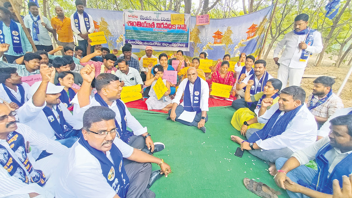 మునుగోడు, మే 1: పంచాయతీ కార్యదర్శులకు పదోన్నతితో పాటు ఉద్యోగ భద్రత కల్పించాలని బీఎస్పీ రాష్ట్ర అధ్యక్షుడు ఆర్ఎస్. ప్రవీణ్కుమార్ డిమాండ్ చేశా రు. సమస్యలు పరిష్కరించాలని కోరుతూ మునుగోడు ఎంపీడీవో కార్యాలయం ఎదుట జే పీఎస్, వోపీఎ్సలు చేపట్టిన దీక్షకు సోమవారం ఆయన మద్దతు తెలిపి మాట్లాడారు. ఇటీవల ఐదు వేల ఉద్యోగాల ను క్రమబద్ధీకరించిన ప్రభుత్వానికి కార్యదర్శులు ఎందుకు గుర్తుకు రాలేదని ప్రశ్నించారు. వాస్తవానికి కార్యదర్శుల ప్రొహిబిషన్ కాలపరిమితి రెండేళ్లకు అదనంగా పెంచిన సమయం సైతం పూర్తి అయినా ప్రభుత్వం పట్టించుకోకపోవడం విడ్డూరంగా ఉందన్నారు. ఈ చర్యలు పదివేల మంది కుటుంబాల జీవితాలతో ఆటాడుకుంటుండటం తో వారు బజారున పడే పరిస్థితి నెలకొందన్నా రు. పంచాయతీ రాజ్ శాఖ మంత్రి మహిళా ఉద్యోగుల పట్ల అవహేళనగా వ్యవహిరిస్తూ అసభ్యంగా ప్రవర్తించడం కాదని, వారు ఎదుర్కొంటున్న సమస్యలపై స్పందించాలన్నారు. మునుగోడు ఉప ఎన్నిక నేపథ్యంలో ఇచ్చిన ప్రభుత్వం హామీలను నెరవేర్చకుండా ప్రజల ను మోసం చేయటమేనన్నారు. మునుగోడును దత్తత తీసుకుంటానని ఇచ్చిన మాట ప్రకారం కట్టుబడి ఉంటానని అట్టహాసంగా ప్రకటించిన మంత్రి కేటీఆర్ ఆచరణలో విఫలమయ్యారని విమర్శించారు. ప్రాజెక్టుల పూర్తి కోసం, నిర్వాసితులకు నష్టపరిహారం చెల్లింపులో మోసమే జరిగిందన్నారు. మరో పక్క గొర్రెల పథకం పేరుతో గొల్ల, కురుమలను ప్రభుత్వం మోసం చేసిందన్నారు. విద్య, వైద్యం లో మార్పు లేదన్నారు. ప్రజలకు ఇచ్చిన హామీల సాధన కోసం తమ పార్టీ నిరంతరం పోరు సాగిస్తోందన్నారు. ఈ సమ్మెలో ఓ కార్యదర్శి కుమార్తె చిన్నారి తన తల్లితో కలిసి ప్లకా ర్డు పట్టుకొని నిరసన చేశారు. ‘మా అమ్మకు ఉద్యోగ భద్రత కల్పించాలి’ అనే ప్లకార్డు ఉండడంతో అభినందించారు. ఈ కార్యక్రమంలో బీఎస్పీ జిల్లా అధ్యక్షుడు పూదరి సైదులు, గోవర్ధన్, నిర్మల, కవిత, అందోజు శంకరాచారి, నాగేంద్ర, అర్జున్, పరుశురాం పాల్గొన్నారు.