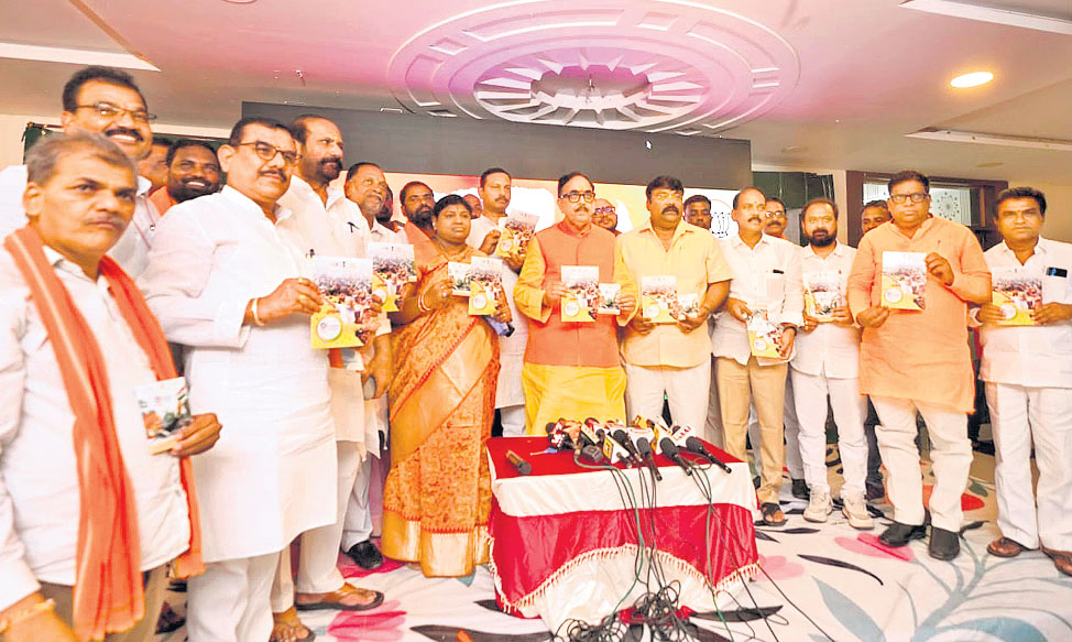 నల్లగొండ, హాలియా, జూ న్ 10: ప్రధాన మంత్రి నరేంద్రమోదీ తొమ్మిదేళ్ల పాలనలో దేశం అగ్రభాగాన నిలిచిందని భారీ పరిశ్రమలశాఖ మంత్రి మహేంద్రనాథ్ పాండే అన్నారు. శనివారం జిల్లా కేంద్రంలో మో దీ తొమ్మిది సంవత్సరాల పాలన లో చేపట్టిన సంక్షేమ పథకాల పై రూపొందించిన పుస్తకాన్ని ఆవిష్కరించిన అనంతరం కార్యకర్తల సమావేశంలో మాట్లాడా రు. ప్రధాన మంత్రి ఆవాస్ యోజన కింద ప్రతీ ఒక్కరికి ఇంటిని నిర్మించాలనే యోచనతో చేపట్టిన పథకం అద్భుత ఫలితాలు ఇస్తోందన్నారు. 3.50కోట్ల మందికి ఇల్లు నిర్మించి ఇచ్చిన ట్టు చెప్పారు. అదేవిధంగా ప్రతీ ఒక్కరికి మరుగుదొ డ్డి ఉండాలన్న లక్ష్యంతో దేశంలో 11.72 కోట్ల మరుగుదొడ్డ నిర్మాణాన్ని పూర్తి చేయడంతోపాటు, 12కోట్ల గృహాలకు మంచినీటి సౌక ర్యం కల్పించామన్నారు. ఆయుష్మాన్ భారత్ కింద రూ.5లక్షల వరకు ఉచిత వైద్యం, జన ఔషది కేంద్రాల ద్వారా తక్కువ ధరకు మందు లు ఇస్తున్నామన్నారు. రాష్ట్రంల్లో బీఆర్ఎ్సకు ప్రత్యామ్నాయం బీజేపీయే అని, ఆ పార్టీని ఎదుర్కొనే శక్తి తమకే ఉందన్నారు. కర్ణాటకలో మాదిరిగా తెలంగాణలో కూడా అధికారంలోకి వస్తామని కాంగ్రెస్ భావిస్తోందని, అది సాధ్యమయ్యే ప్రసక్తే లేదన్నారు. కార్యక్రమంలో మాజీ ఎమ్మెల్యే ధర్మారావు, రాష్ట్ర ప్రధాన కార్యదర్శి శృతి, జిల్లా ఇన్చార్జి ప్రదీప్, జిల్లా అధ్యక్షుడు కంకణాల శ్రీధర్రెడ్డి, రాష్ట్ర కార్యదర్శి మాదగోని శ్రీనివా్సగౌడ్, నాయకులు బండారు ప్రసాద్, నూకల నర్సింహారెడ్డి, వీరెళ్లి చంద్రశేఖర్, గోలి మధుసూదన్రెడ్డి, సాంబయ్య, నిమ్మల రాజశేఖర్రెడ్డి, కన్మంతరెడ్డి శ్రీదేవిరెడ్డి, కంకణాల నివేదిత, నాగం వర్షిత్రెడ్డి, నాగిరెడ్డి, బొజ్జ నాగరాజు, గుర్రం వెంకన్న, వెంకట్సాయి, మొరిశెట్టి నాగేశ్వర్రావు, పాలకూరి రవి, నీరజ తదితరులు పాల్గొన్నారు.